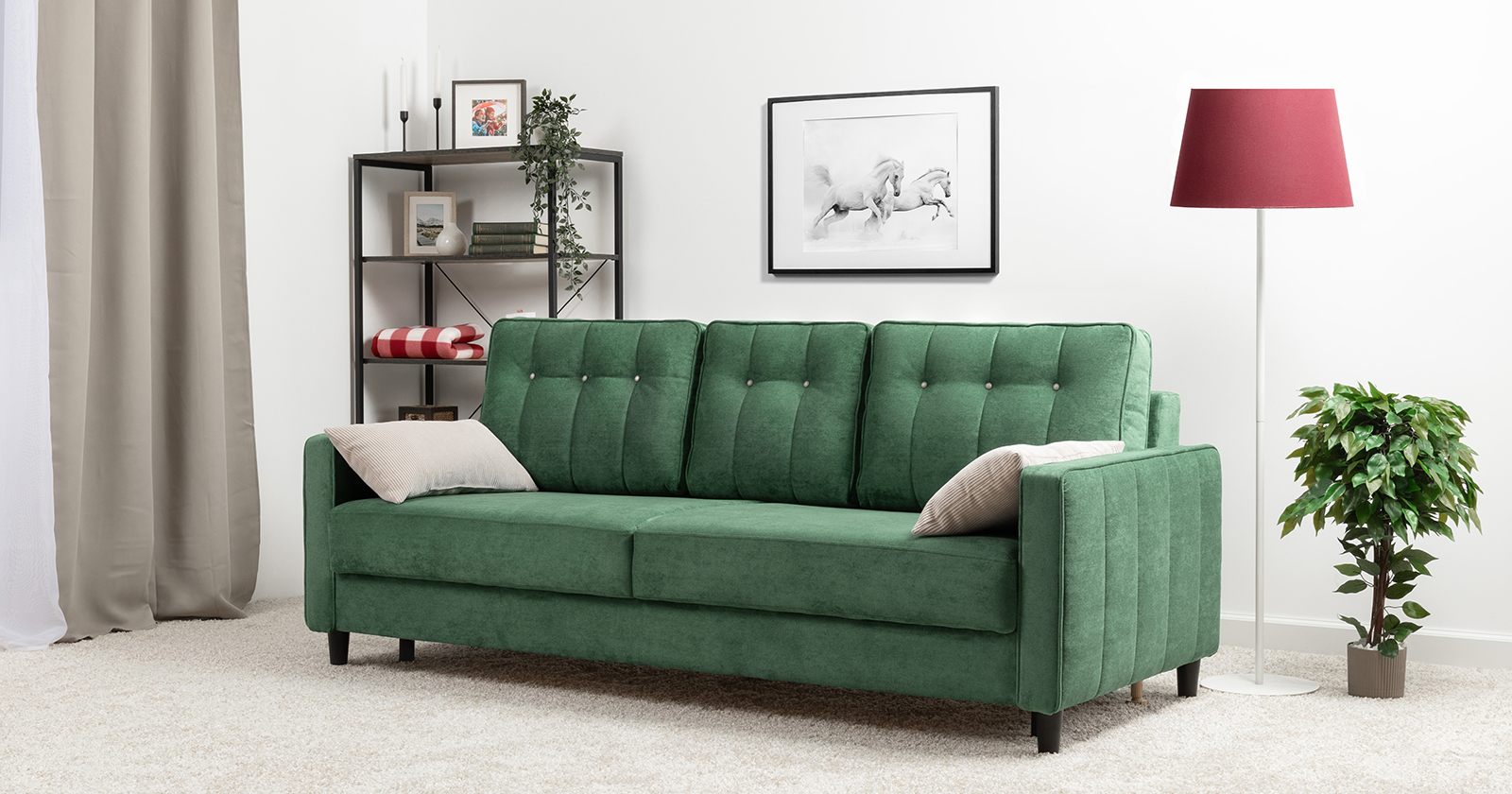 Диван-кровать прямой Арно ТД 566 велюр Лаки 20 хвойный зеленый, Vertical 910 молочно-серый