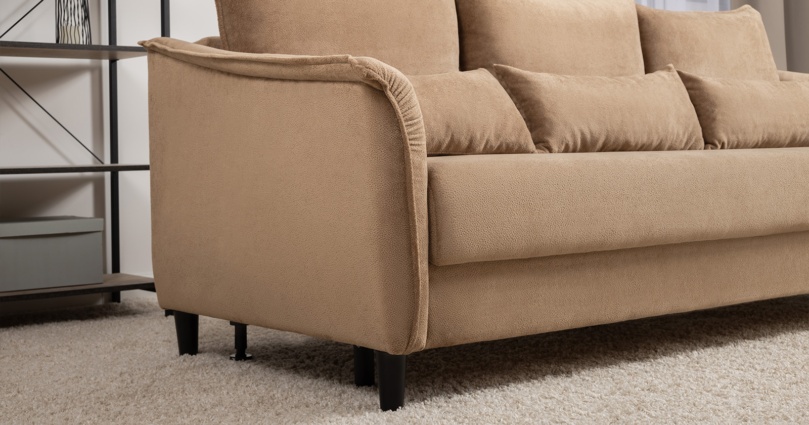 Изогнутые подлокотники в форме лепестков придают коллекции изысканный и элегантный вид, а дополнительные декоративные подушки обеспечат поддержку поясницы и помогут уютно устроиться на диване. В наполнении дивана используется высокоэластичная пена, которая адаптируется к форме вашего тела и гарантирует максимальный комфорт во время отдыха.