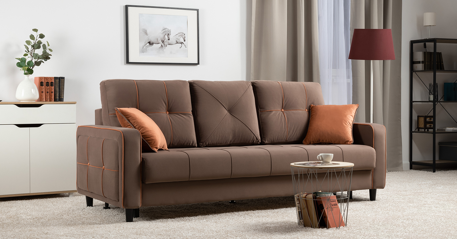 Диван-кровать прямой Черри ТД 286 велюр Irida 05 шоколадно-коричневый, Эвита терра терракотовый