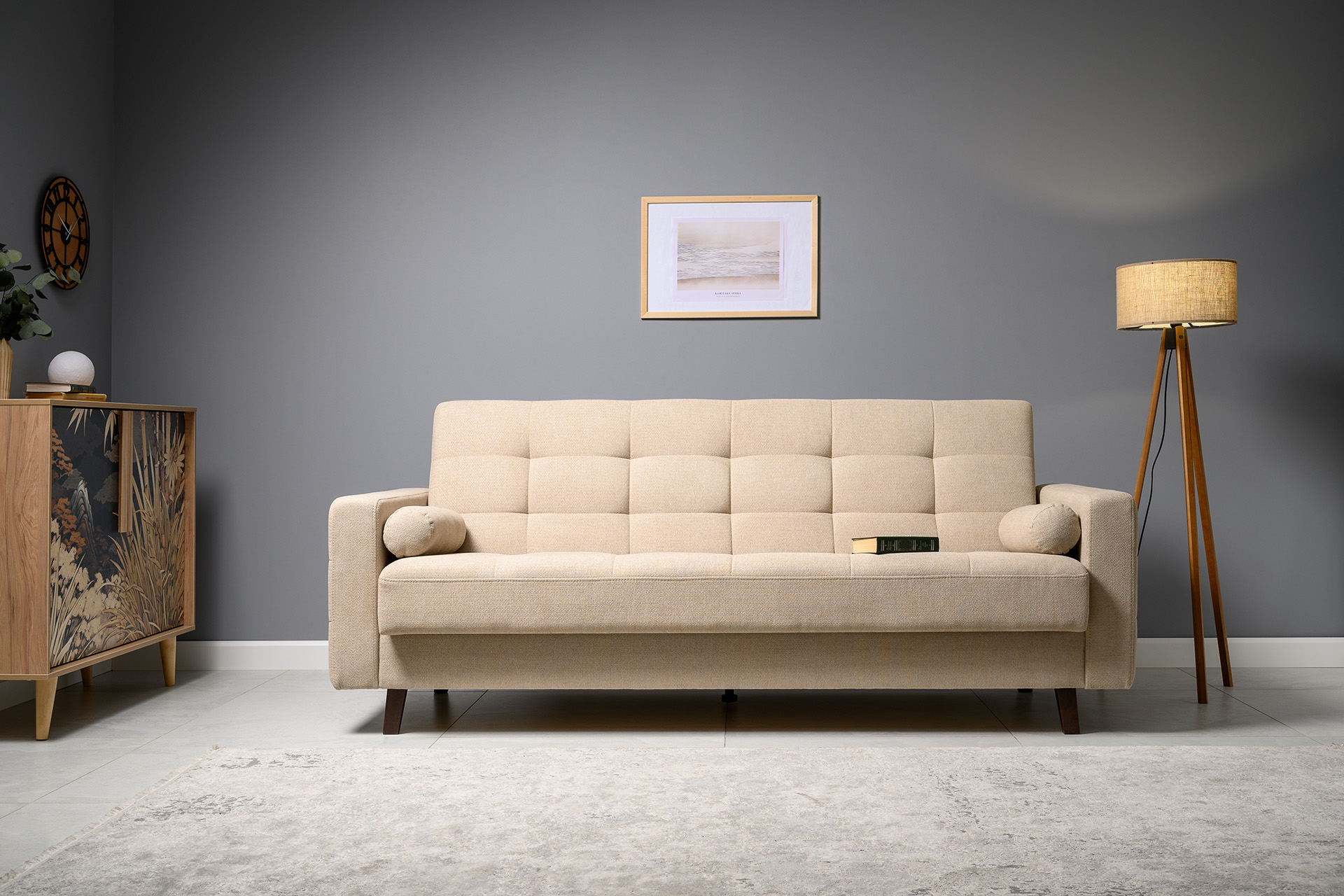 Диван-кровать прямой Тэдди 1502 композиция 1, букле Pique 006 бежевый, модульная система