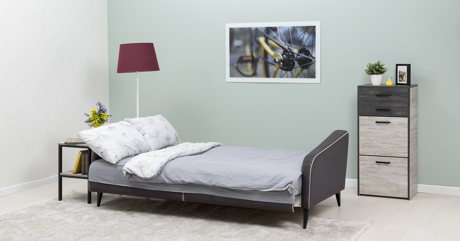 Стильный компактный диван-книжка для современных интерьеров. Дополнит гостиную, сэкономит место в гостевой, сделает уютным и функциональным кабинет или офис.