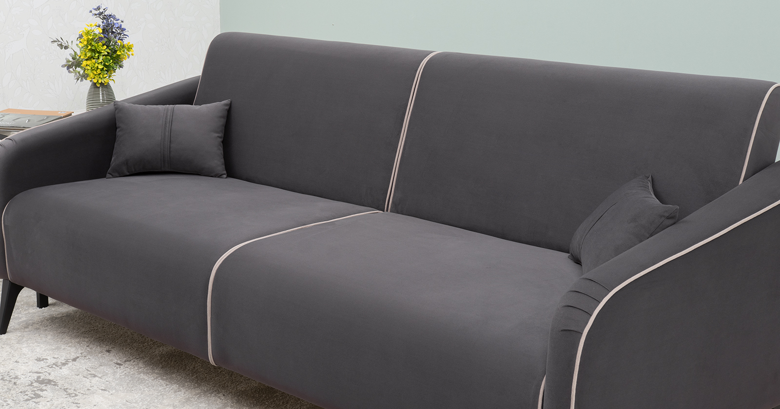 Диван-кровать прямой Ноэль ТД 447 велюр темно-серый, светлый кварцевый серый