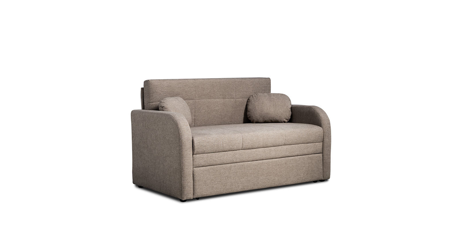 Коллекция выполнена в современном минималистичном стиле с мягкой обивкой из износостойкой ткани и декоративной стежкой, подчеркивающей геометрию форм. Механизм трансформации обеспечивает дополнительное спальное место, делая мебель не только эстетичной, но и максимально функциональной для небольших пространств.