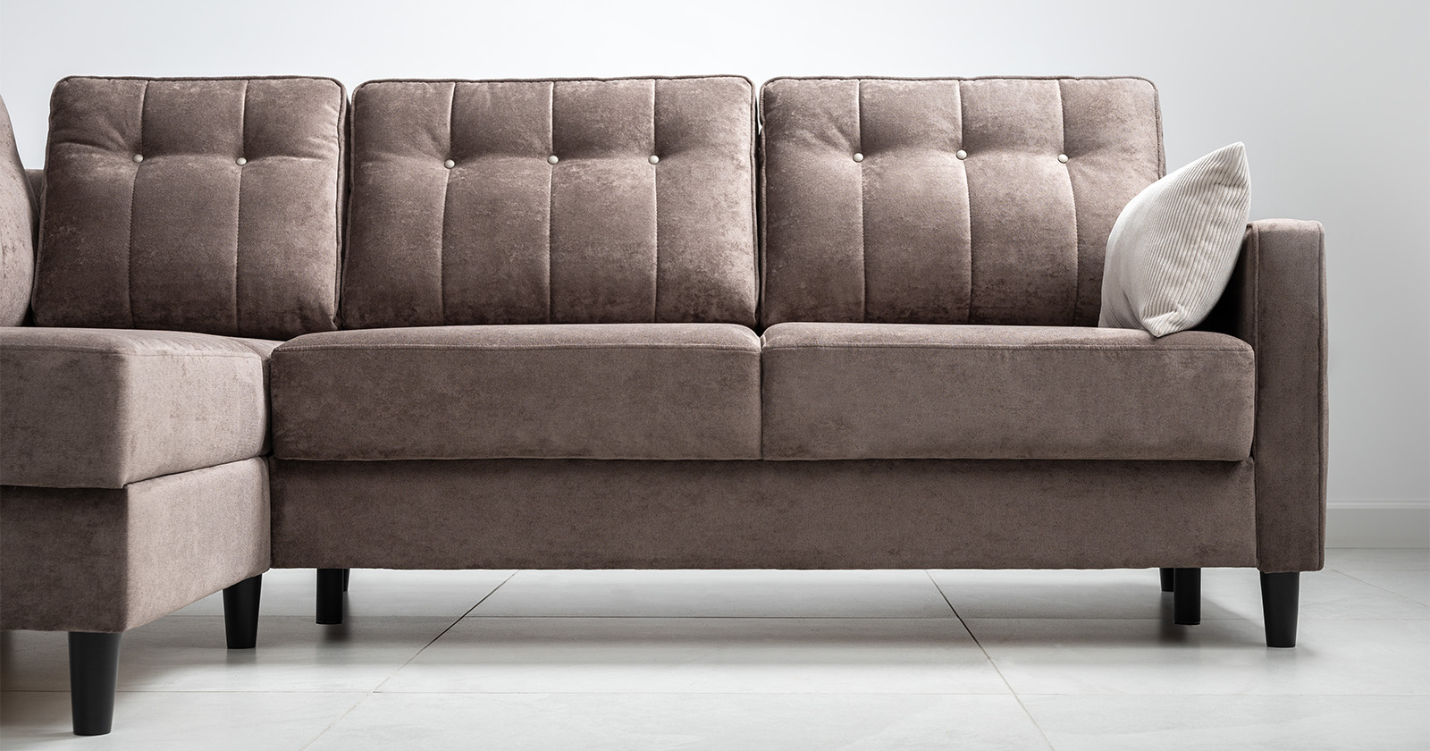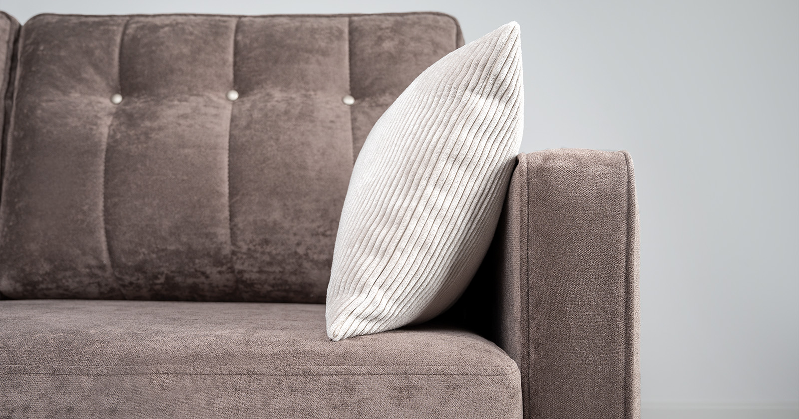 Модель с универсальным углом подойдёт любителям часто менять обстановку. Устойчивые конесообразные деревянные ножки придают дивану легкость и изящество. Для завершения интерьера можно заказать кресло Арно.