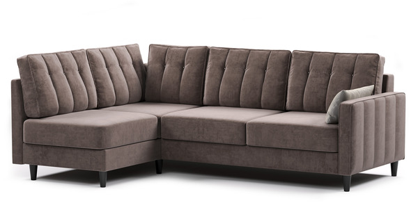 Диван-кровать угловой Арно ТД 565 велюр Лаки 04 песочный, Vertical 910 молочно-серый, сборка на любую сторону