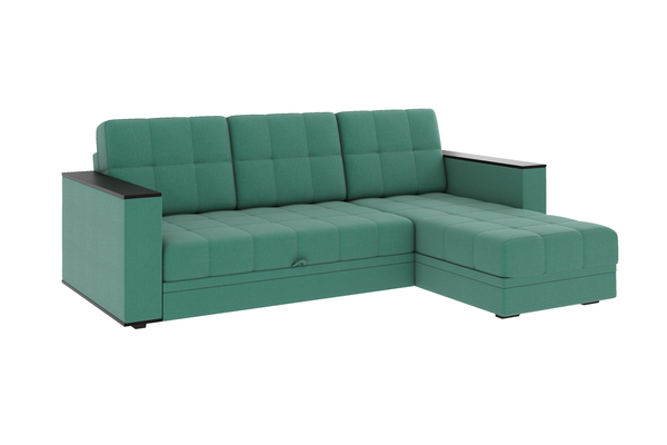 Диван-кровать угловой Атлант велюр зеленый со спальным местом (сборка на любую сторону)