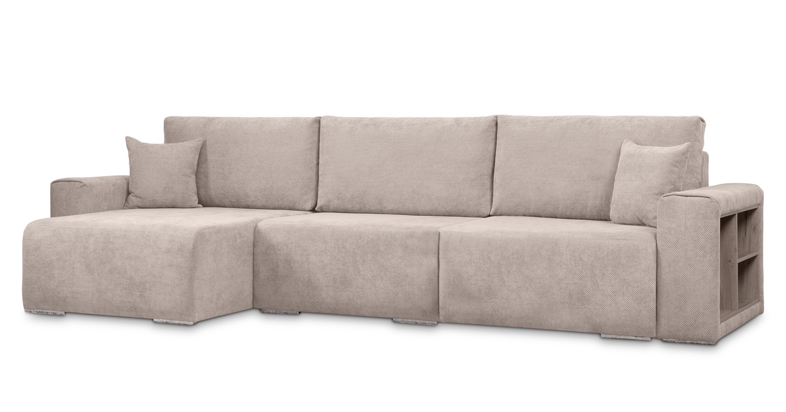 Диван-кровать угловой Тэдди 1502 композиция 2, букле Pique 006 бежевый, модульная система, сборка на любую сторону