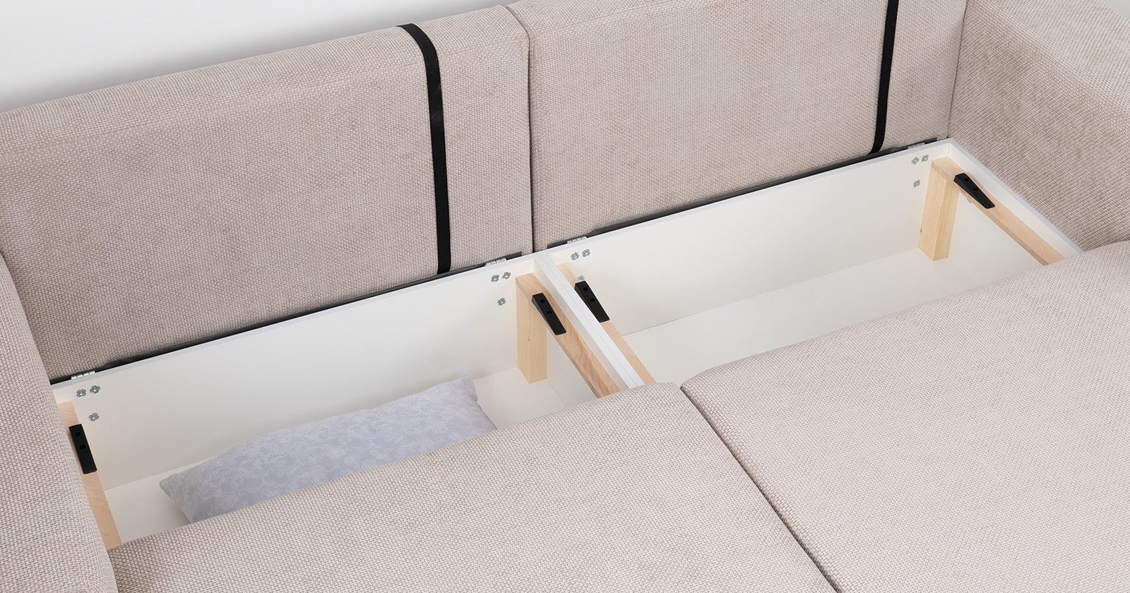 «Компоновка 5» состоит из: оттоманки арт. ТО, дивана арт. ТД, узкого подлокотника арт. ТБ, широкого подлокотника с ящиком арт. ТБ, двух приспинных подушек и двух декоративных подушек.