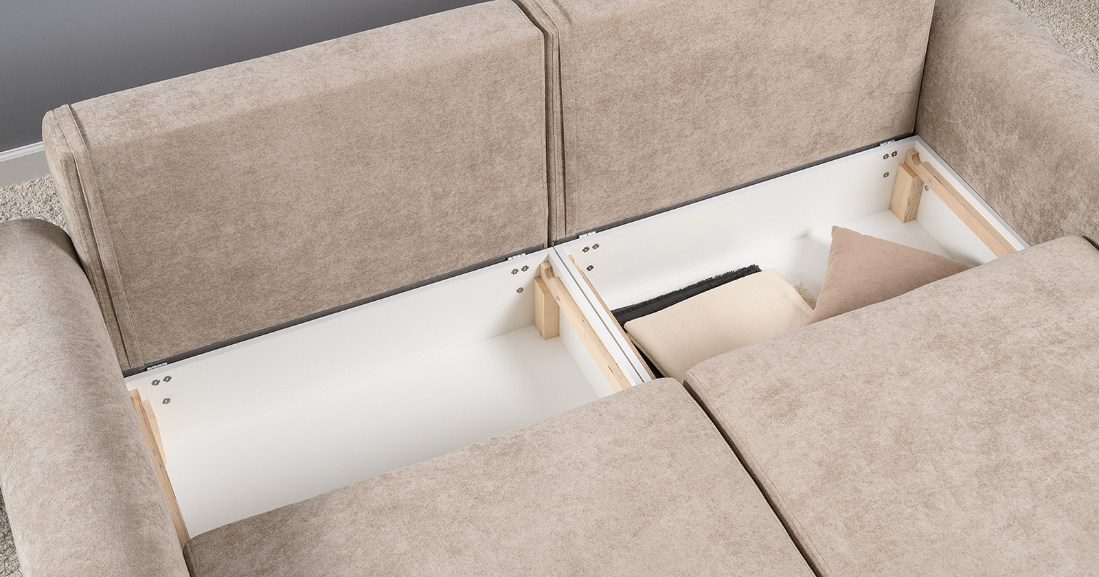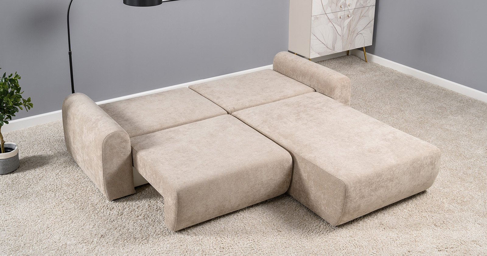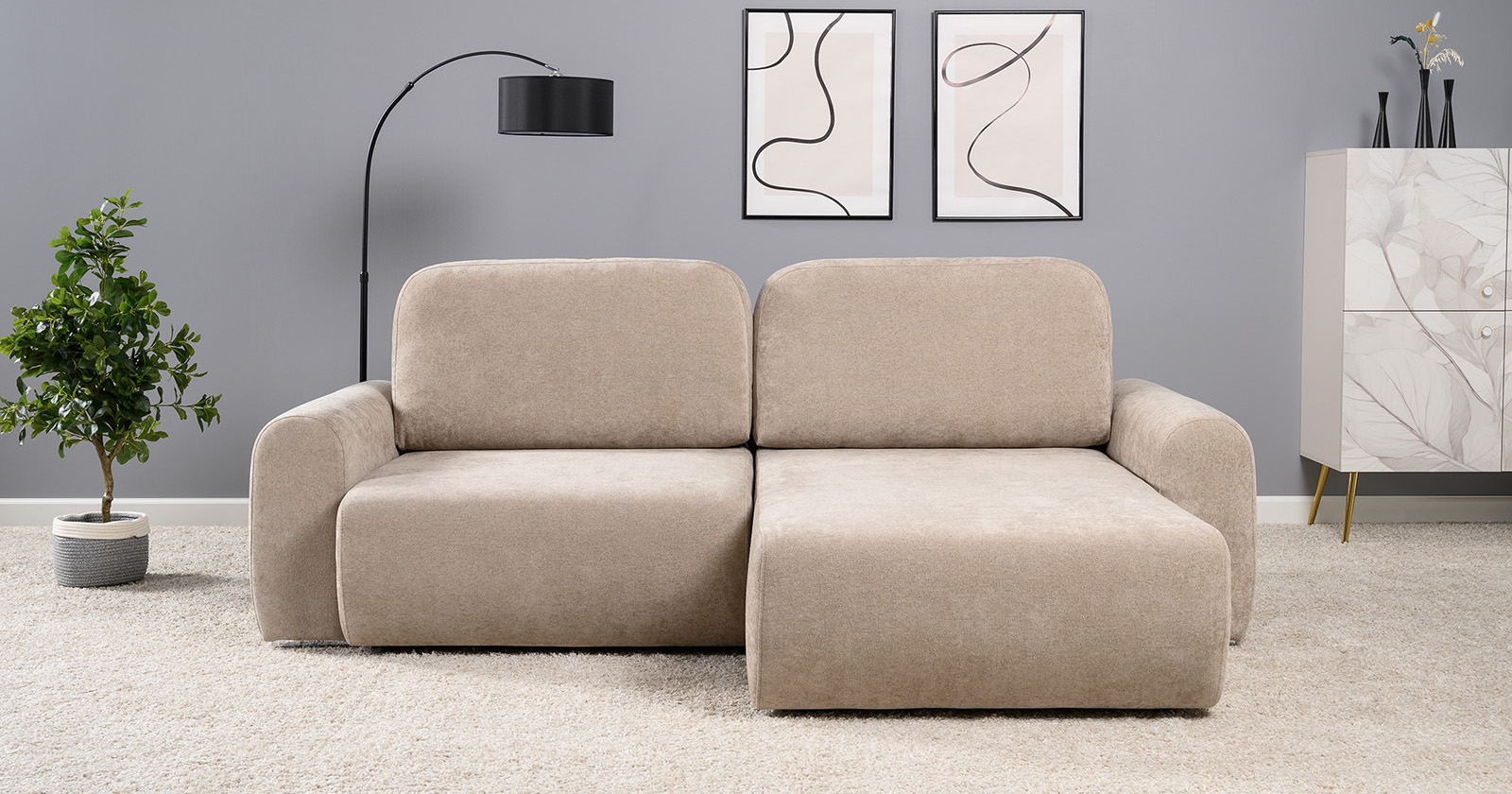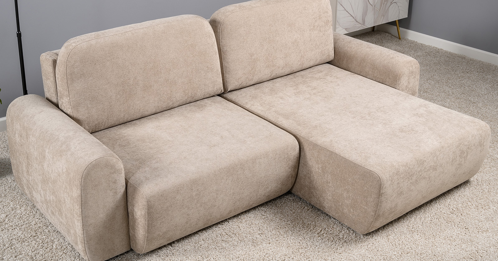 Диван-кровать угловой Тэдди 1502 композиция 2, букле Pique 006 бежевый, модульная система, сборка на любую сторону