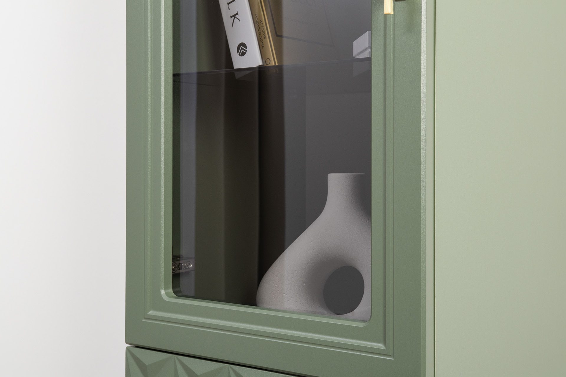 Шкаф-витрина Марион 16.397.02 дымчатый зеленый K521, олива шагрень AG 1050 ПВХ