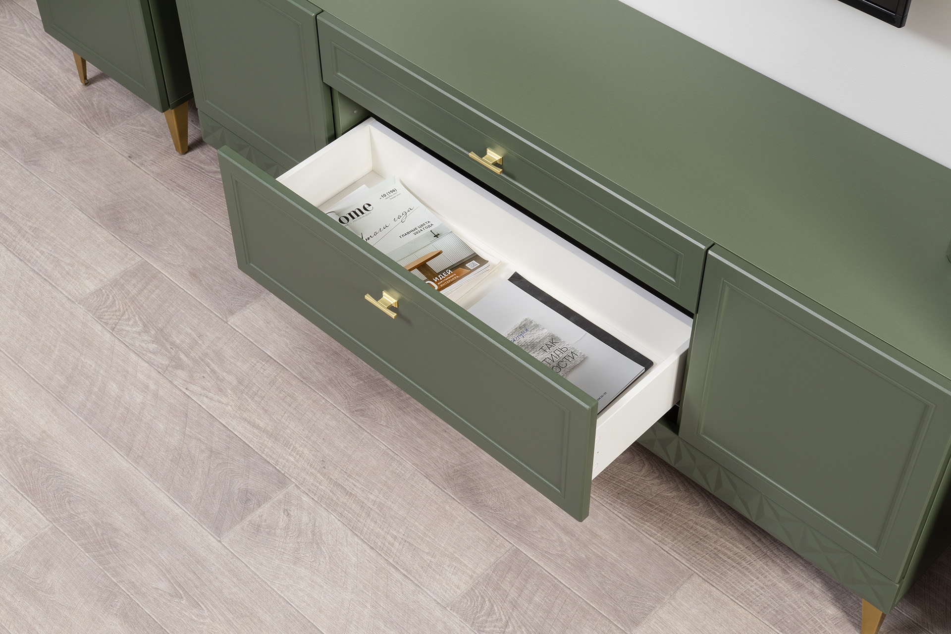 Тумба Марион 16.167 дымчатый зеленый K521, олива шагрень AG 1050 ПВХ, белый PE шагрень