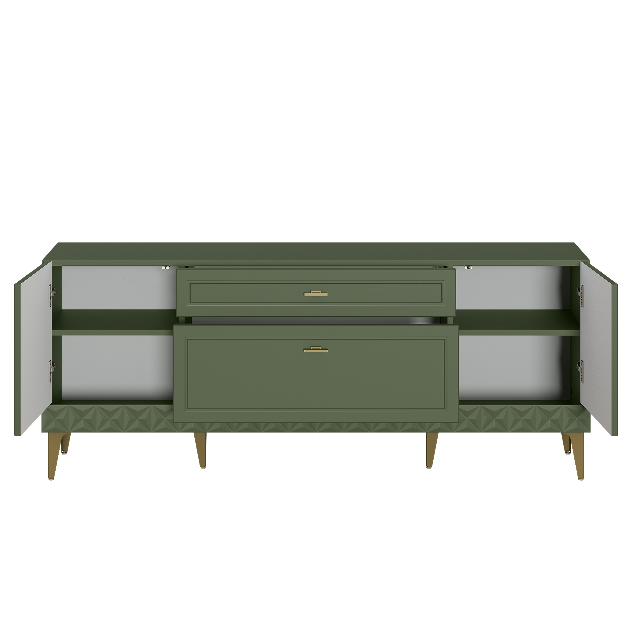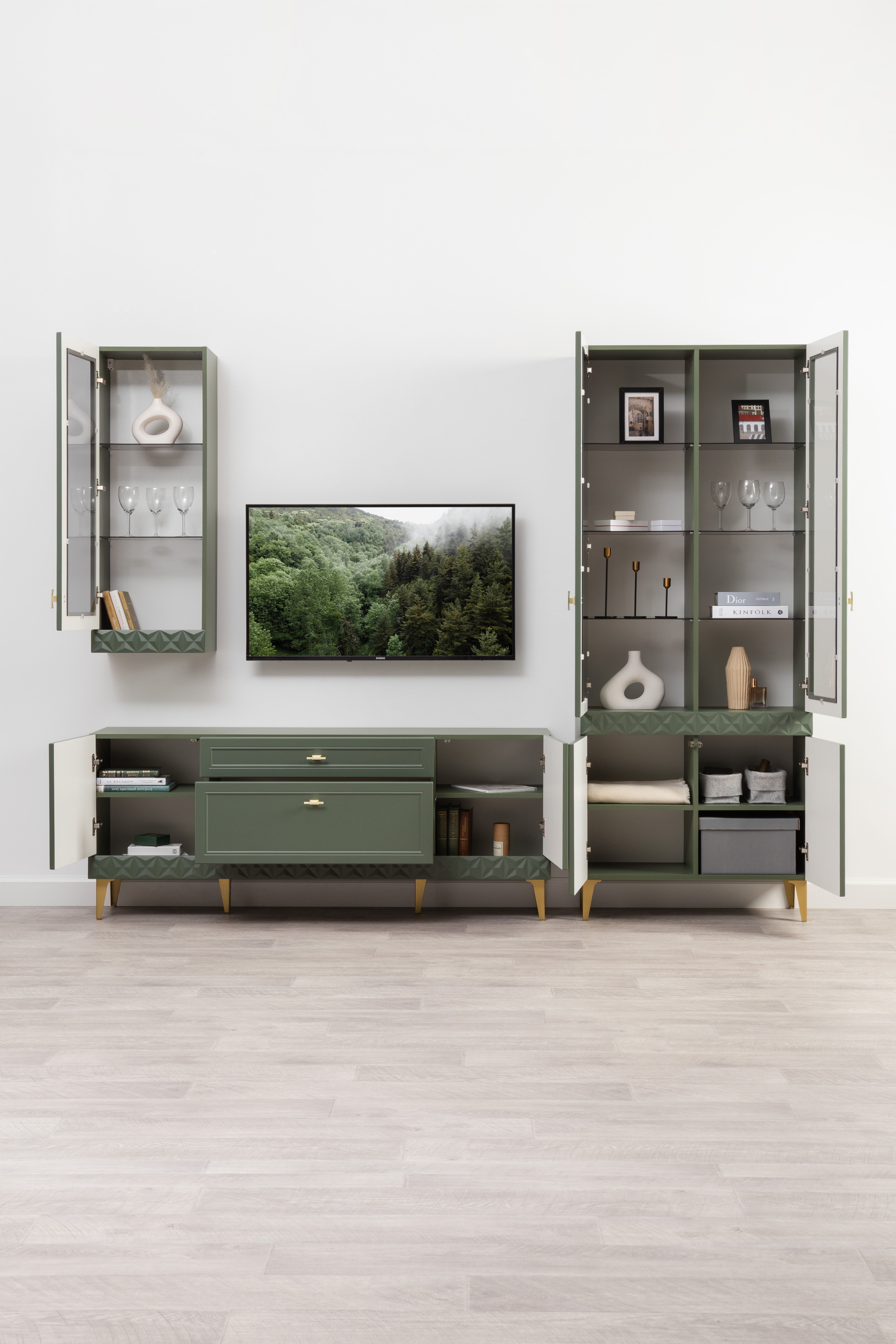 Гостиная Марион композиция 1 дымчатый зеленый K521, олива шагрень AG 1050 ПВХ, белый PE шагрень (собирается на любую сторону)