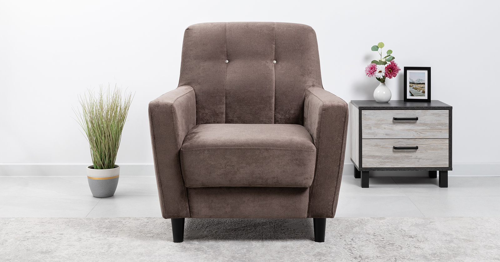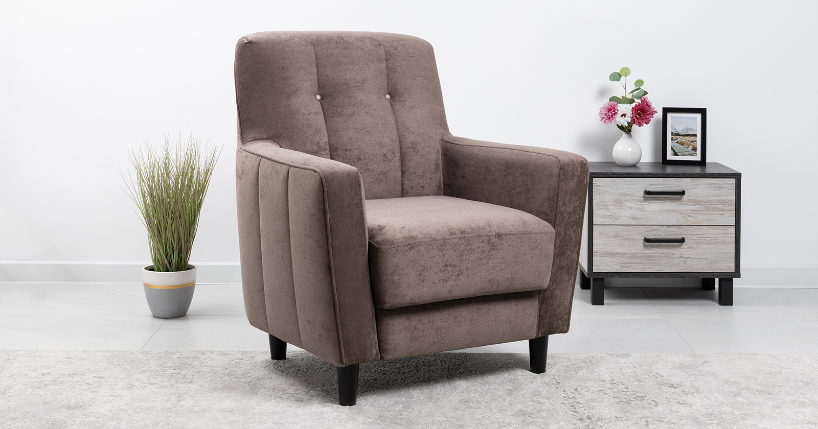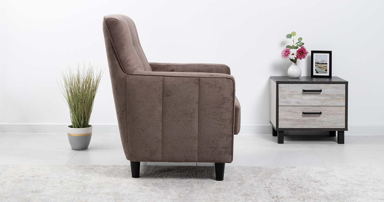 Лаконичное кресло Арно с комфортной посадкой дополнит современный интерьер. Высокие ножки из массива делают кресло визуально лёгким и уместным в комнате любой площади, а задняя спинка в ткани основы позволит использовать его для зонирования пространства. Модель выполнена в тактильно приятном микровелюре в трендовых цветах.