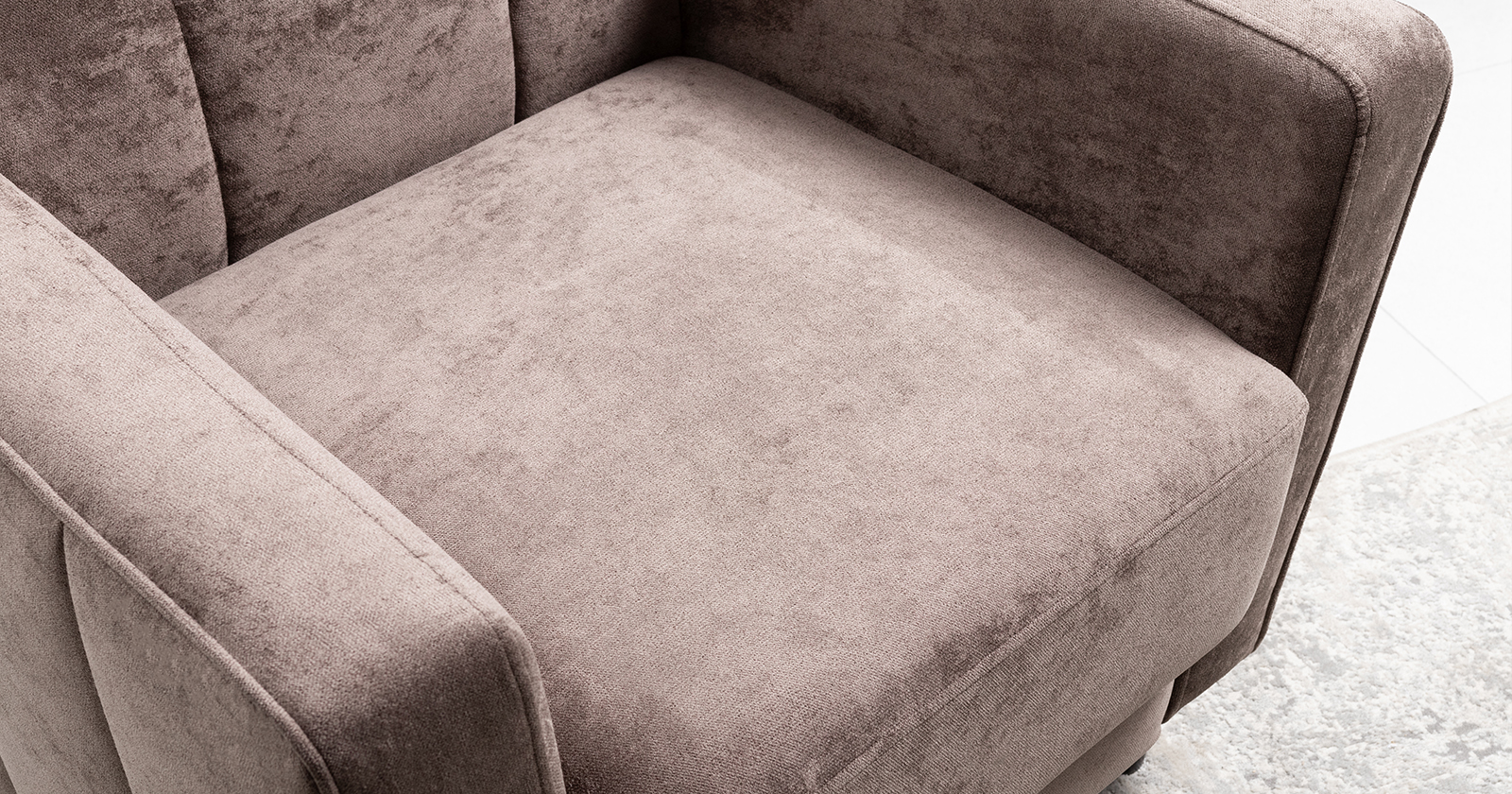 Стежка на внутренней спинке и боковине. Отделочная строчка по сидению. Декоративный кант в тон на подлокотниках и спинке. Изюминку коллекции придают металлические пуговицы на спинке.