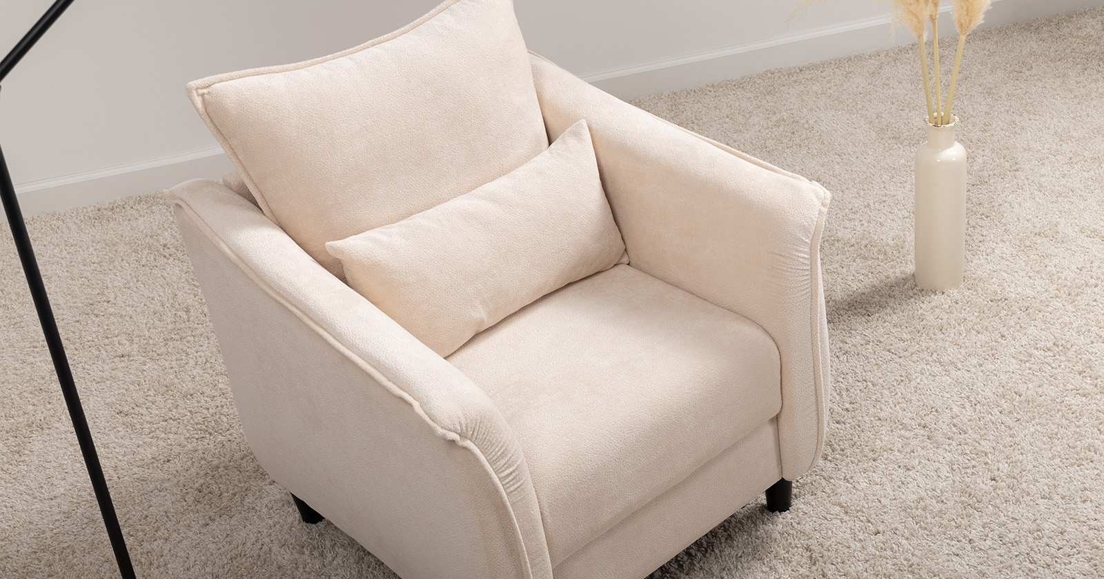 Изогнутые подлокотники в форме лепестков придают коллекции изысканный и элегантный вид, а дополнительные декоративные подушки обеспечат поддержку поясницы и помогут уютно устроиться на кресле.