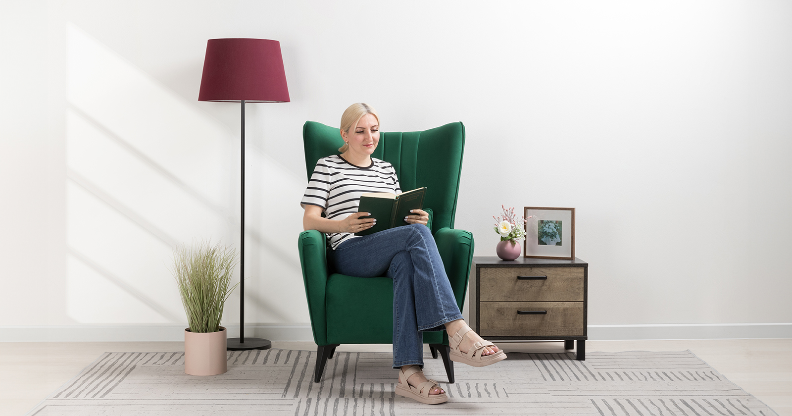 Классическое каминное кресло в современном прочтении. Элегантное кресло дополнит диван Ноэль или поможет организовать уголок для отдыха в гостиной, спальне или на лоджии. Высокая спинка с поясничной подушкой равномерно распределяет нагрузку на позвоночник, что позволяет качественно отдохнуть и расслабиться.