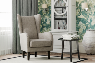 Модель «Шеффилд» - кресло с прямой спинкой для любителей классики. Каминное кресло ― самая классическая трактовка из всех существующих современных вариантов вольтеровского кресла. В нем остались высокие ножки, глубокая посадка, а прямая спинка и «ушки» с высокими подлокотниками прячут от суеты. В такое кресло легко сесть, но трудно подняться, настолько оно уютное. "Шеффилд" отлично подходит для классического интерьере, так и для современного: минимализм, лофт, ар-деко и даже как акцент в скандинавском и хай-тек стилях. Модель выполнена в тканях велюр и рогожка. Цветовые комбинации от молочно-белого до насыщенного изумрудного. Ножки выполнены из дерева.