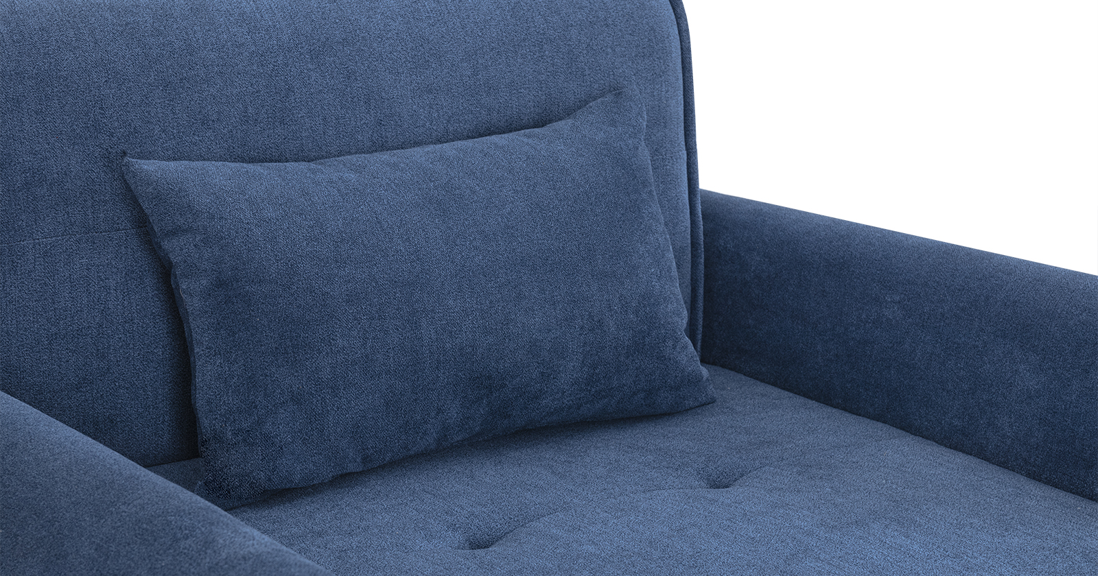 На модулях дивана (подлокотник, спинка дивана) цельнокроеные канты, обработанные двойным швом с лицевой отстрочкой на 1,2 см. Спинка дивана с имитацией двух подушек, на передних деталях которых втянуты по две втяжки. На задней стороне спинки втянуты 5 втяжек. На внешней стороне подлокотников втянуты 2 втяжки. Сиденье дивана с 5-ю втяжками. Диван с 2-мя подушками-думками прямоугольной формы (без“молнии”).