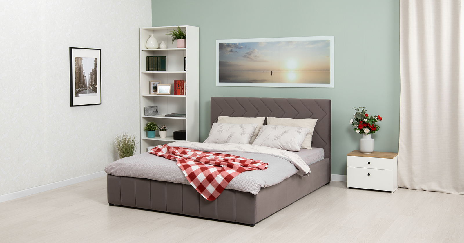 Кровать Милана 140 велюр серо-коричневый с ортопедическим основанием и подъемным механизмом