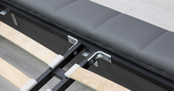 В комплект входит ортопедическое основание. Изготавливается в кожзаме белого, бежевого и темно-коричневого цвета. Декоративная отстрочка.
