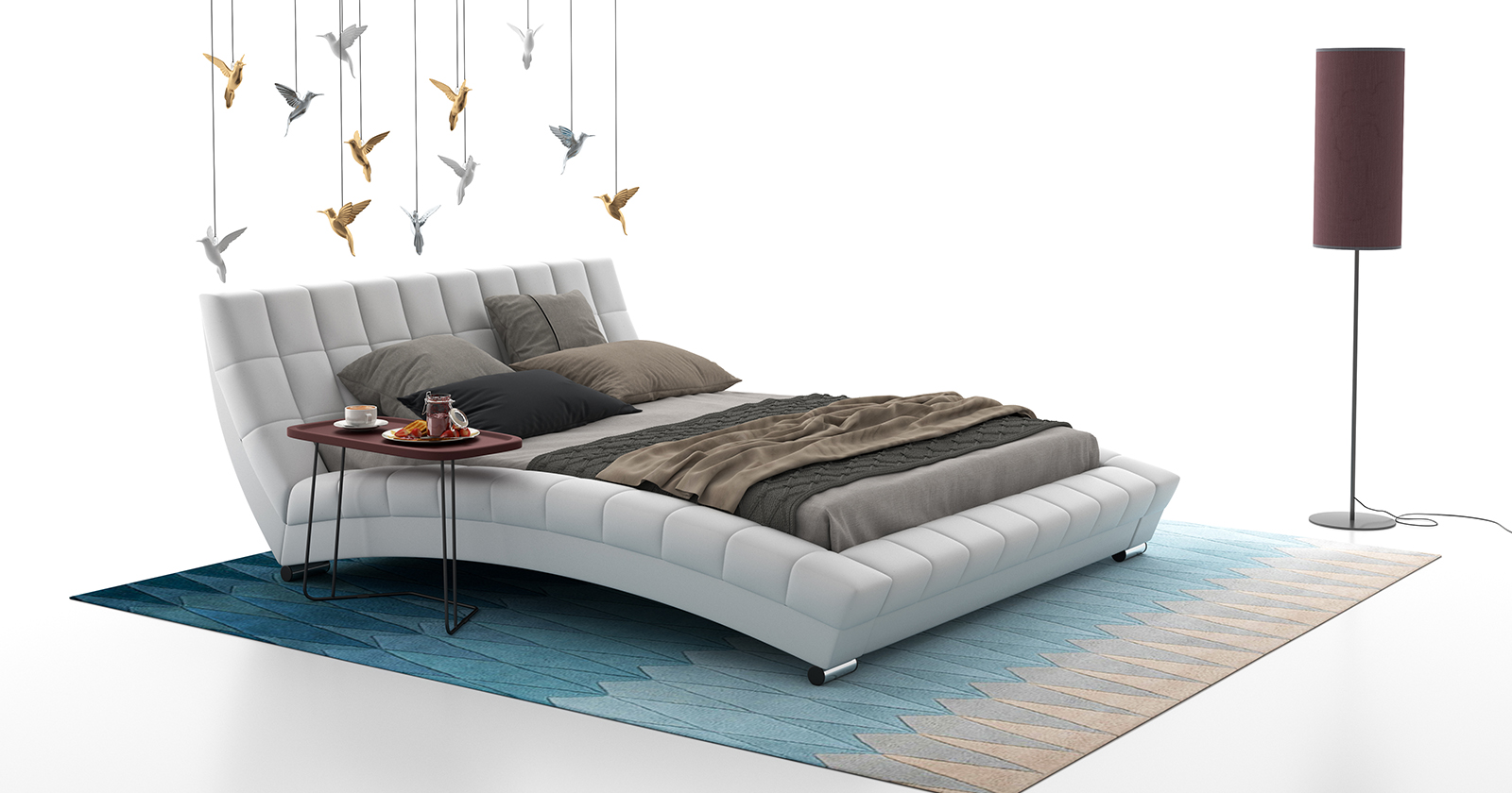 Каркас кровати декорирован стежкой