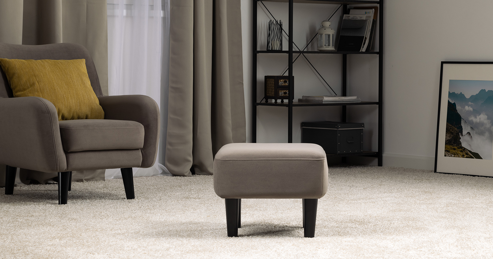 Мягкие линии и визуальная легкость — отличительные черты пуфа Дакота. Гармонично дополнит диван и кресло из этой коллекции.