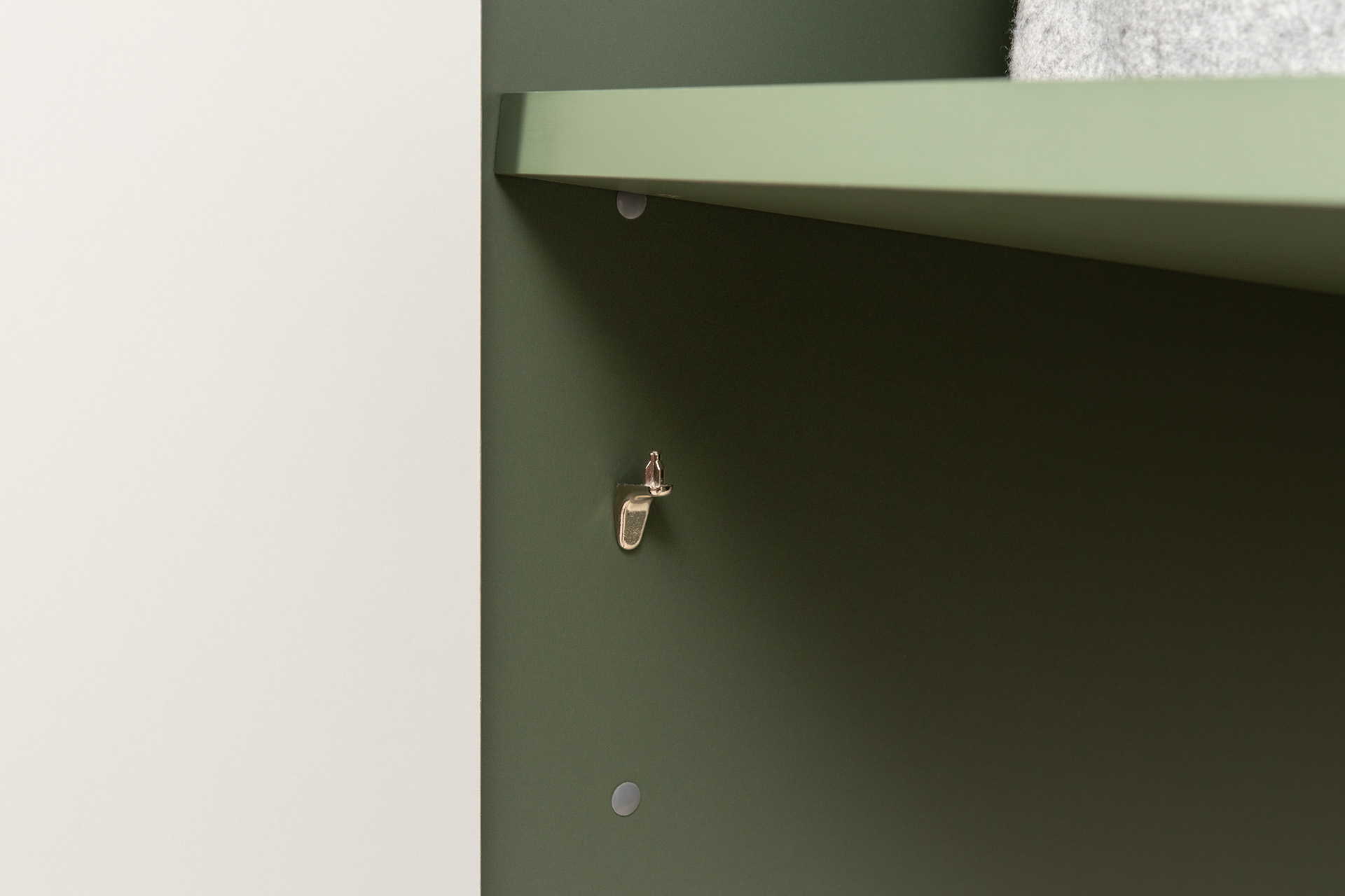 Изящные линии, глубокая фрезеровка фасадов из МДФ и благородные оттенки. Утончённая «Слоновая кость» и изысканная «Олива Шагрень» с глубоким зелёным тоном — создают атмосферу уюта, тепла и благородства. Металлические ручки и опоры золотого цвета придают мебели утончённый блеск, а петли и направляющие с доводчиками обеспечивают плавное и бесшумное закрытие фасадов.
