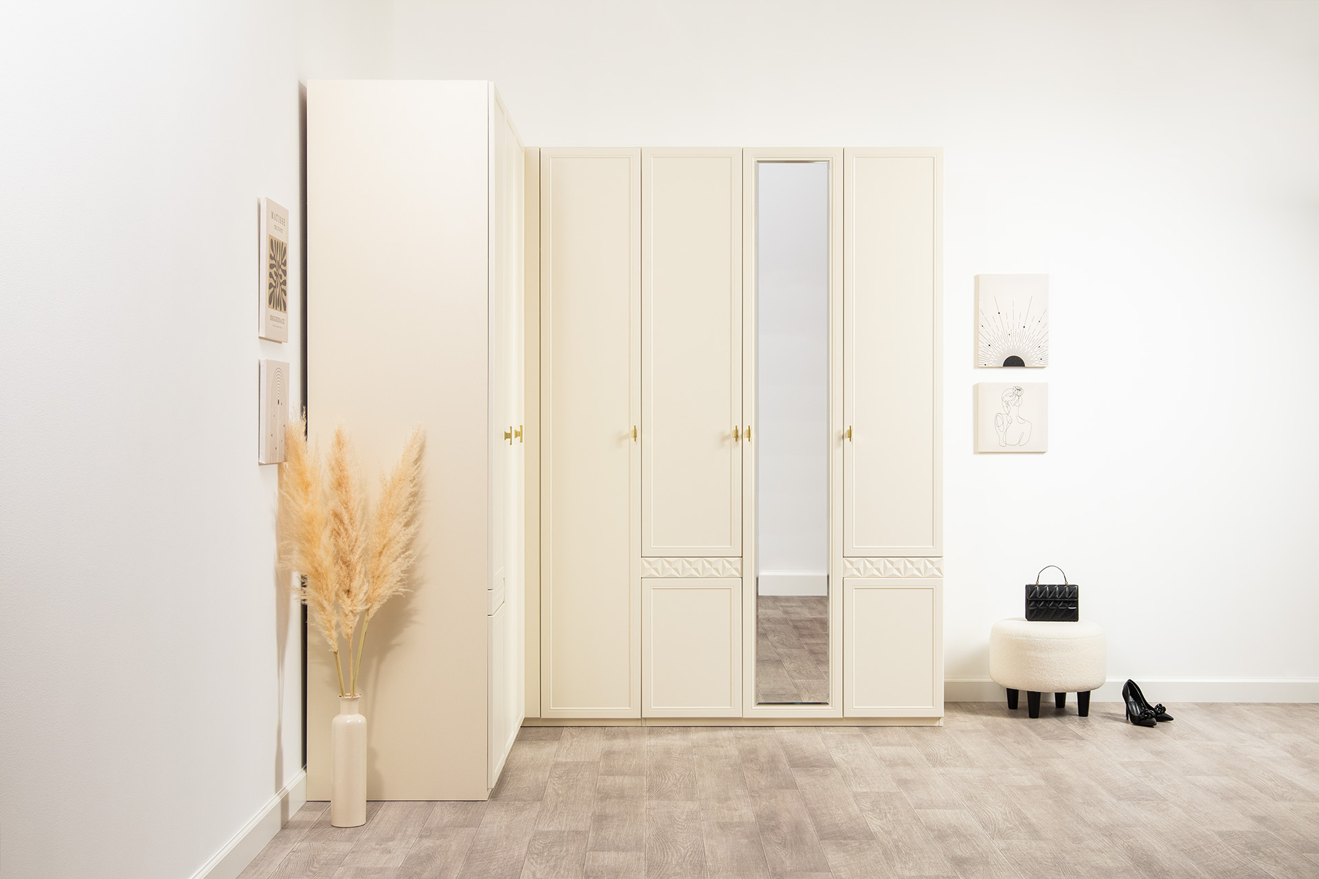 Шкаф для одежды Марион 16.340.03 слоновая кость С341 PE, слоновая кость 6898 ПВХ (собирается на любую сторону)