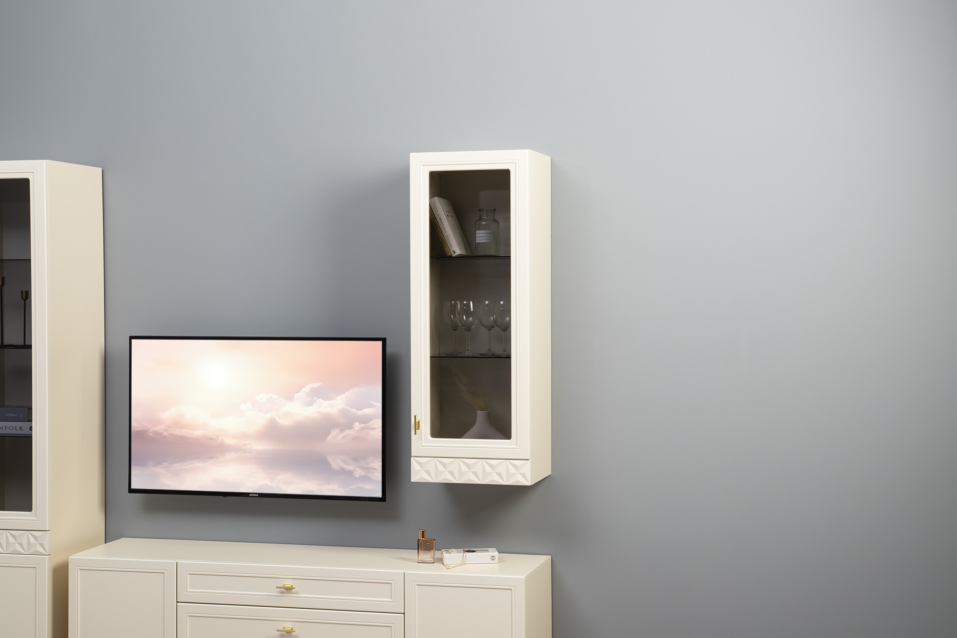 В коллекции представлены три типа витрин с тонированным закалённым стеклом, которые придают пространству лёгкость и свет. «Марион» — идеальное сочетание традиций и актуального дизайна в каждой детали.