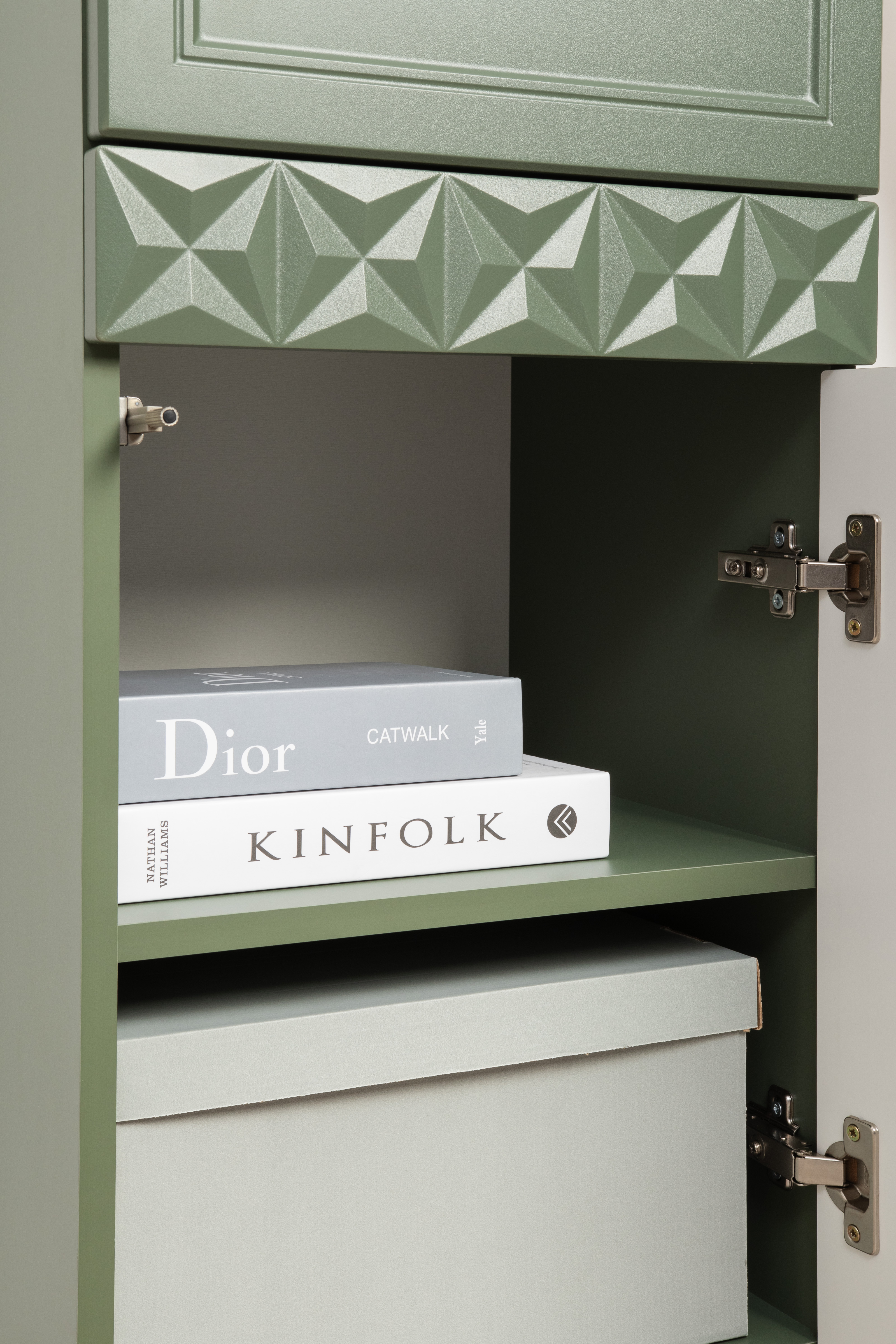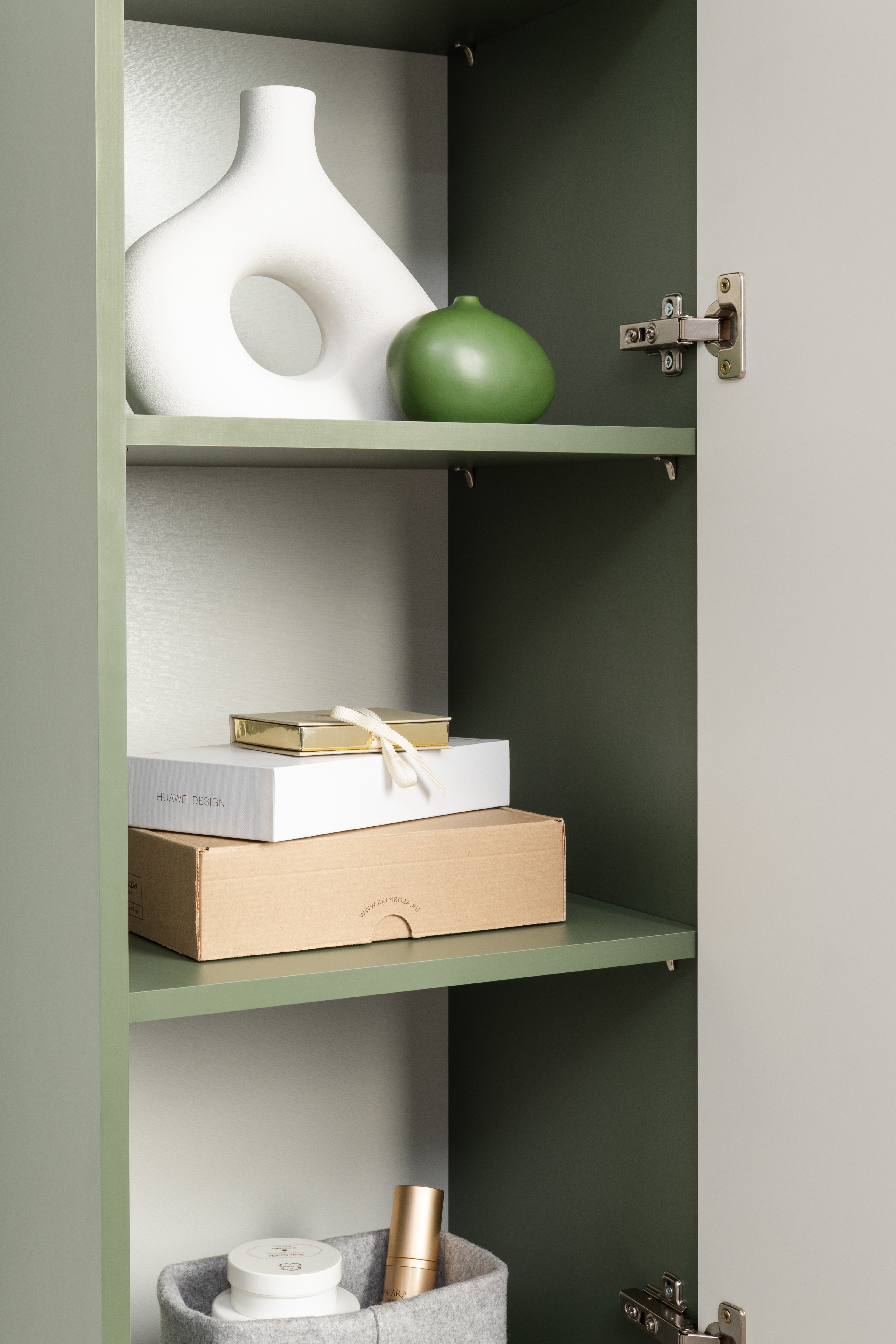 Шкаф навесной Марион 16.334 дымчатый зеленый K521, олива шагрень AG 1050 ПВХ (собирается на любую сторону)
