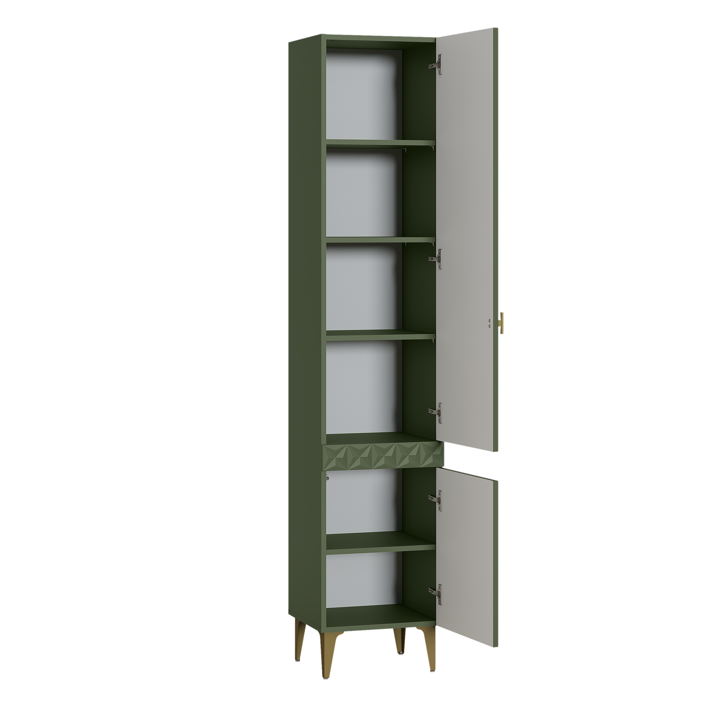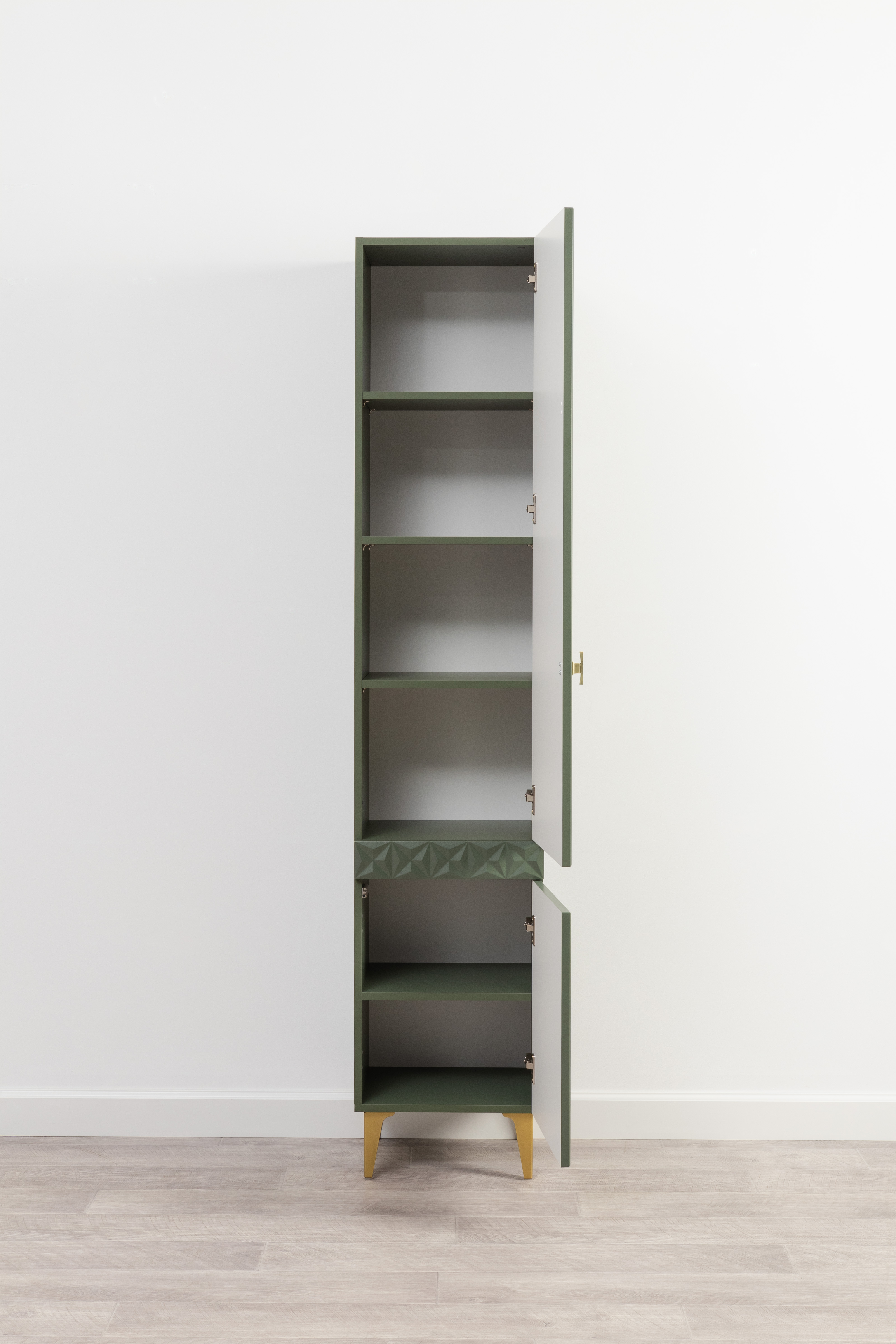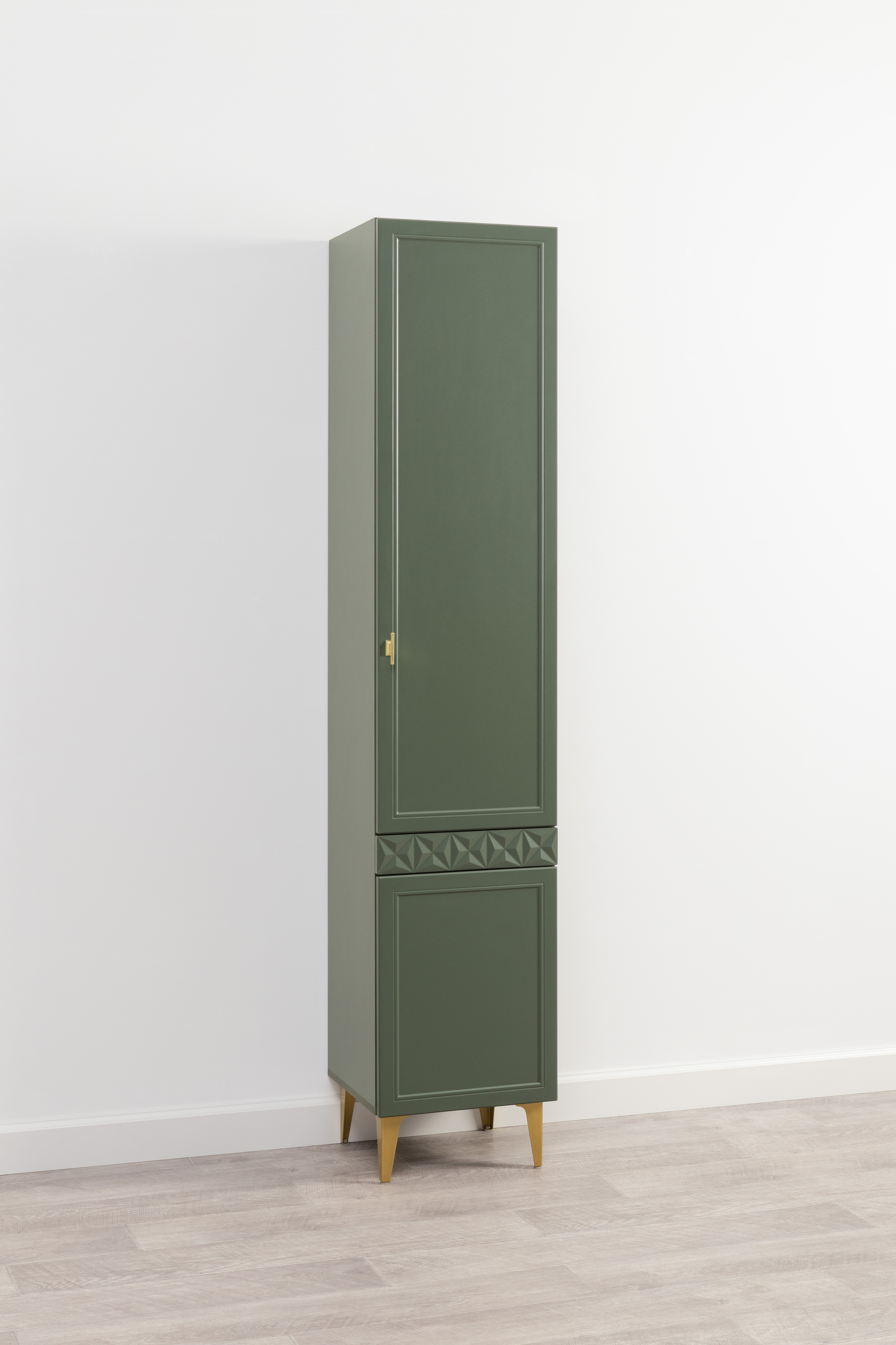 Шкаф-пенал Марион 16.333.01 дымчатый зеленый K521, олива шагрень AG 1050 ПВХ (собирается на любую сторону)
