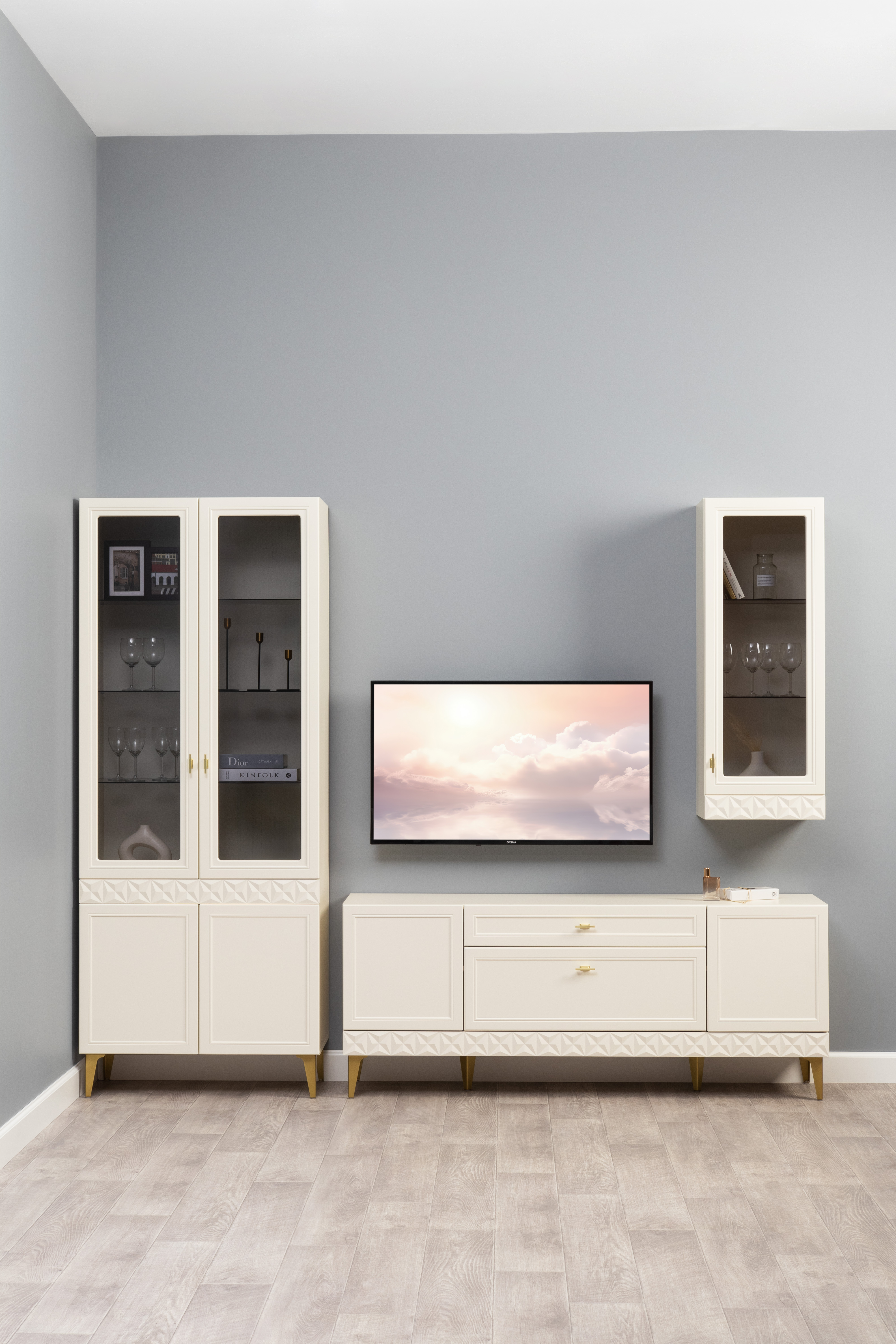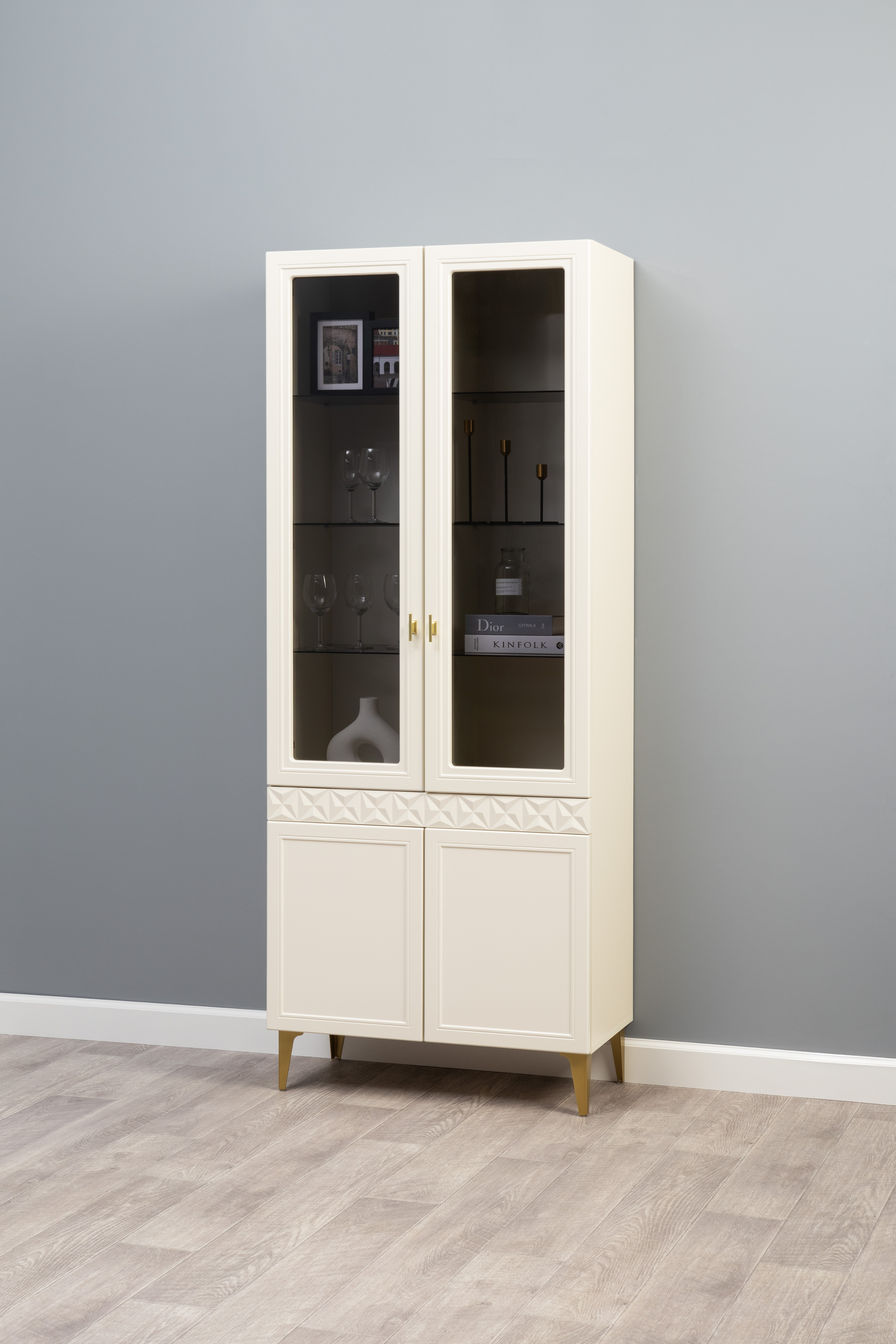 В коллекции представлены три типа витрин с тонированным закалённым стеклом, которые придают пространству лёгкость и свет. «Марион» — идеальное сочетание традиций и актуального дизайна в каждой детали.