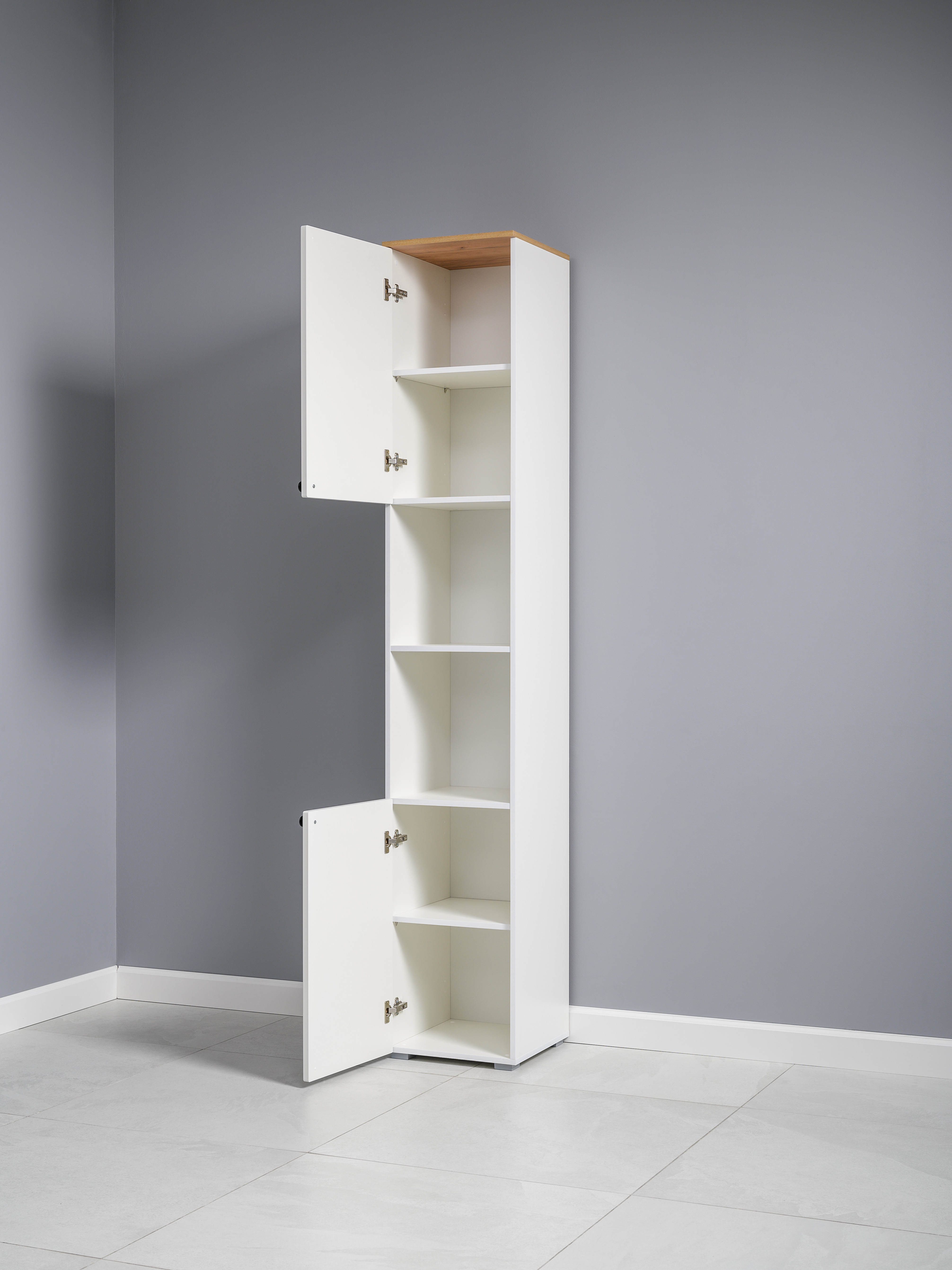Стеллаж Остин 16.427 белый PE шагрень, дуб золотой CRAFT, белая шагрень 4101 ПВХ, сборка на любую сторону