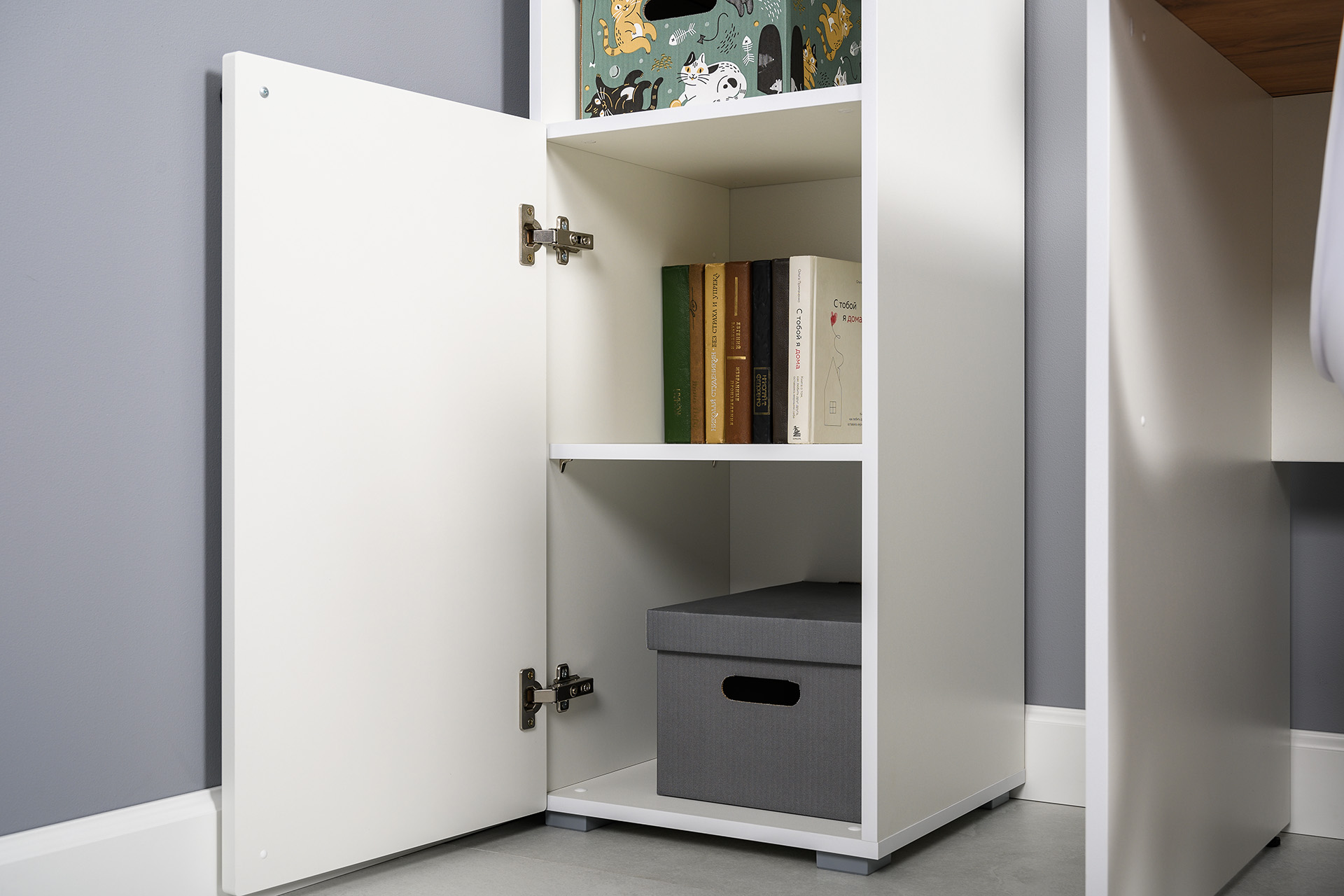 Стеллаж торцевой Лайн 10.141 дуб серый CRAFT, белый глянец ПВХ