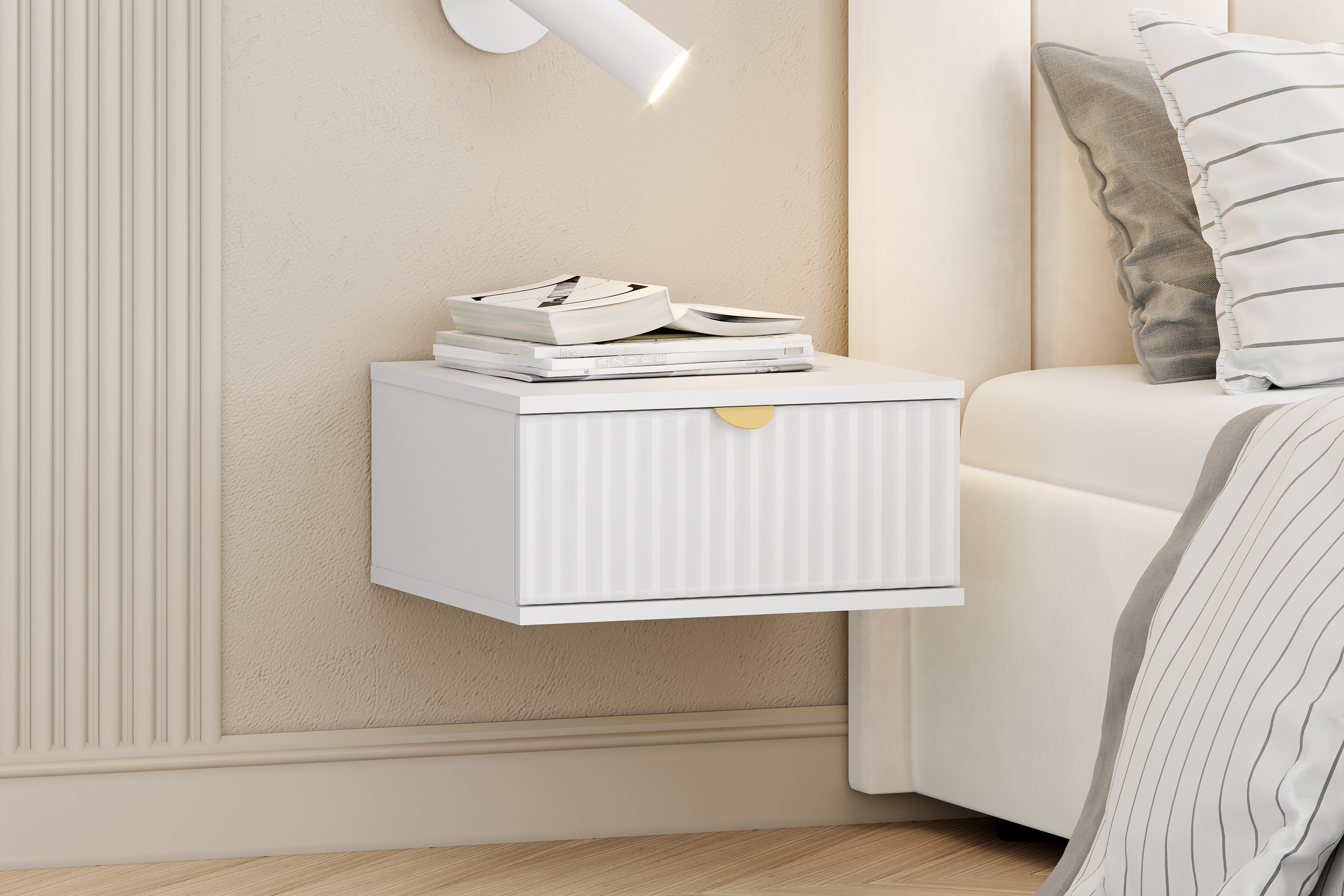 Тумба оснащена выдвижным ящиком, который открывается плавно и бесшумно благодаря шариковым направляющим.