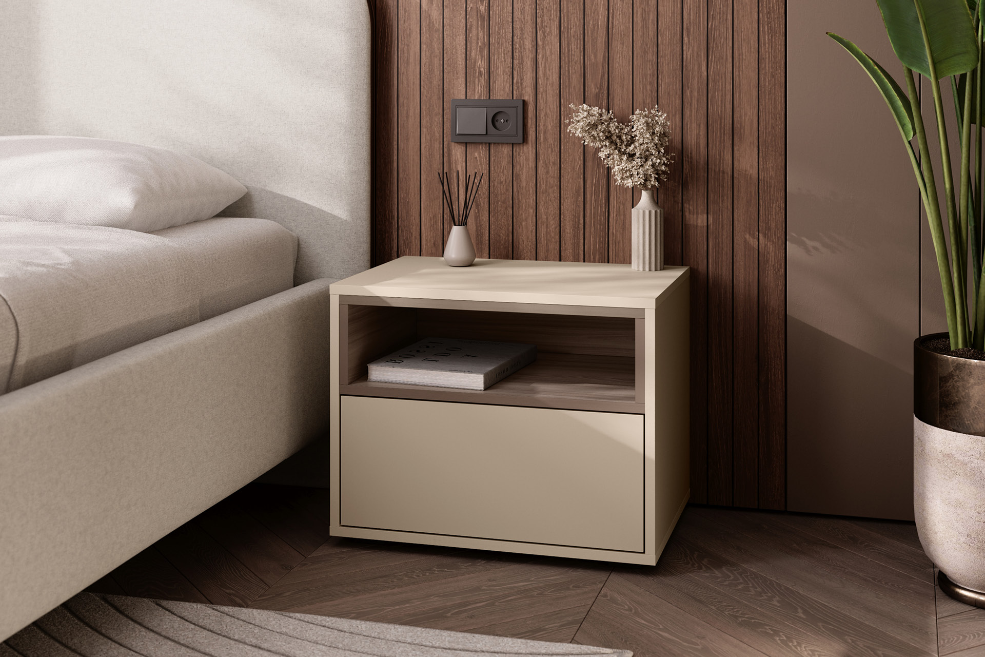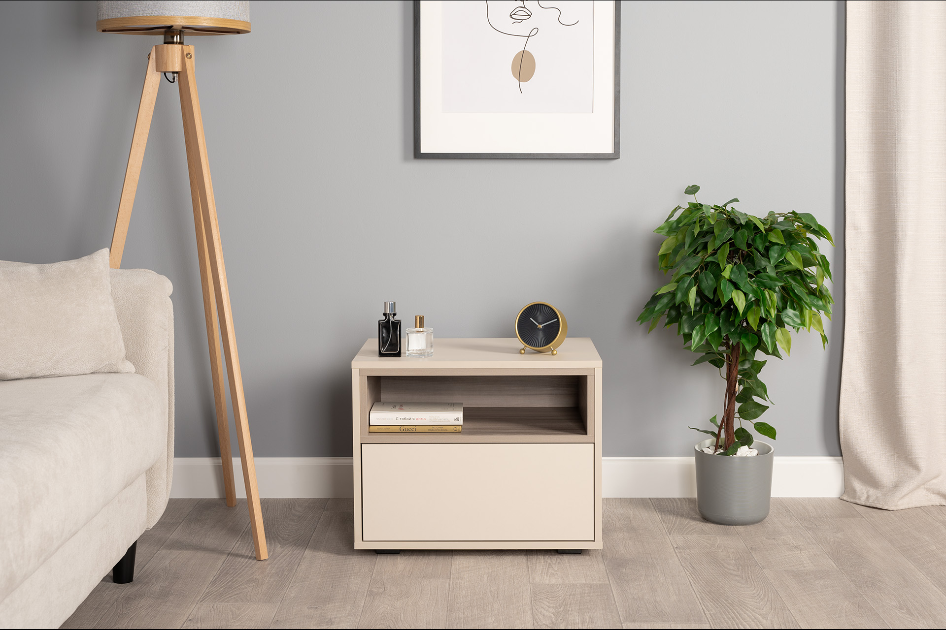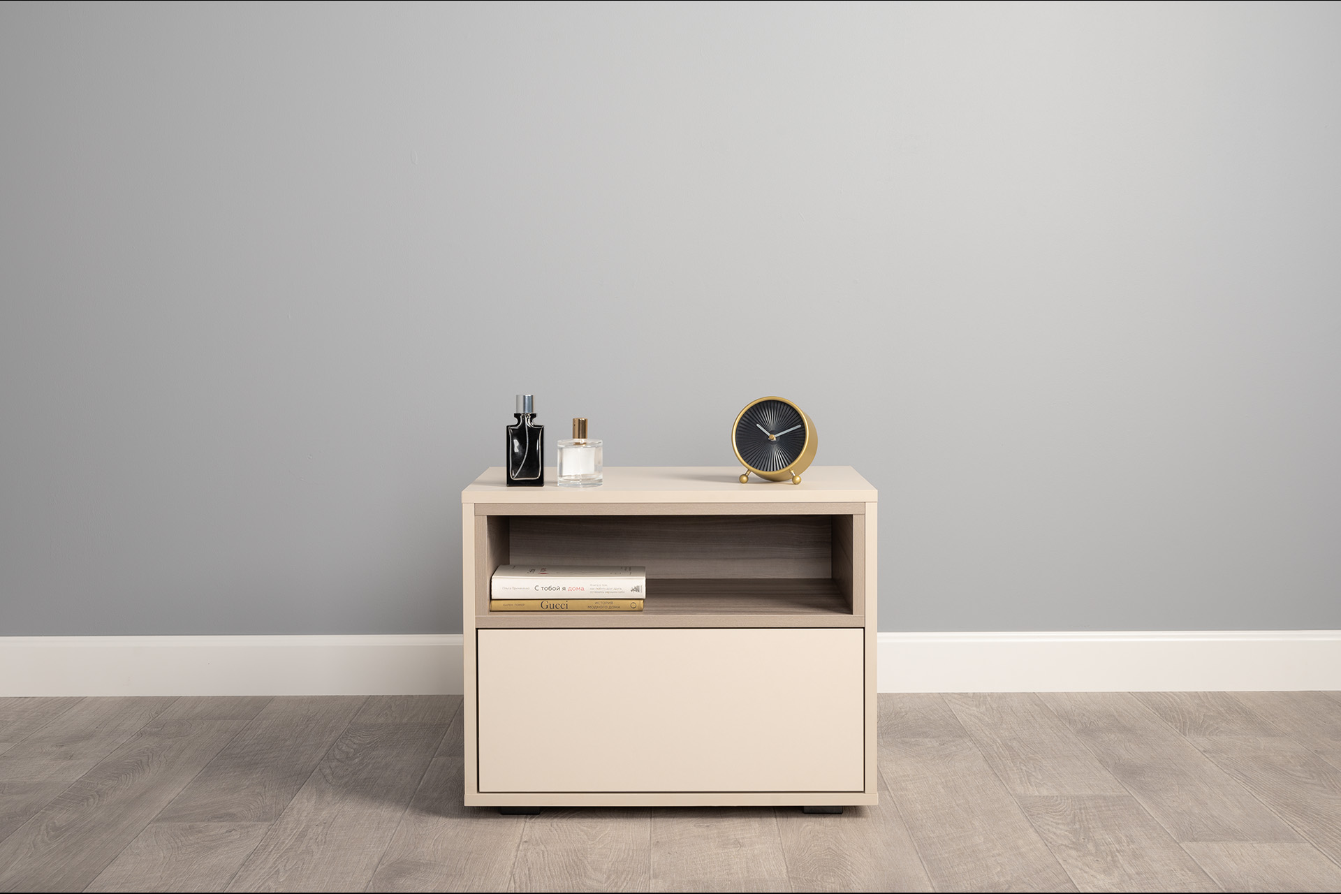 Тумба прикроватная Лакки бук песочный, дуб тортуга ПВХ, белый глянец ПВХ