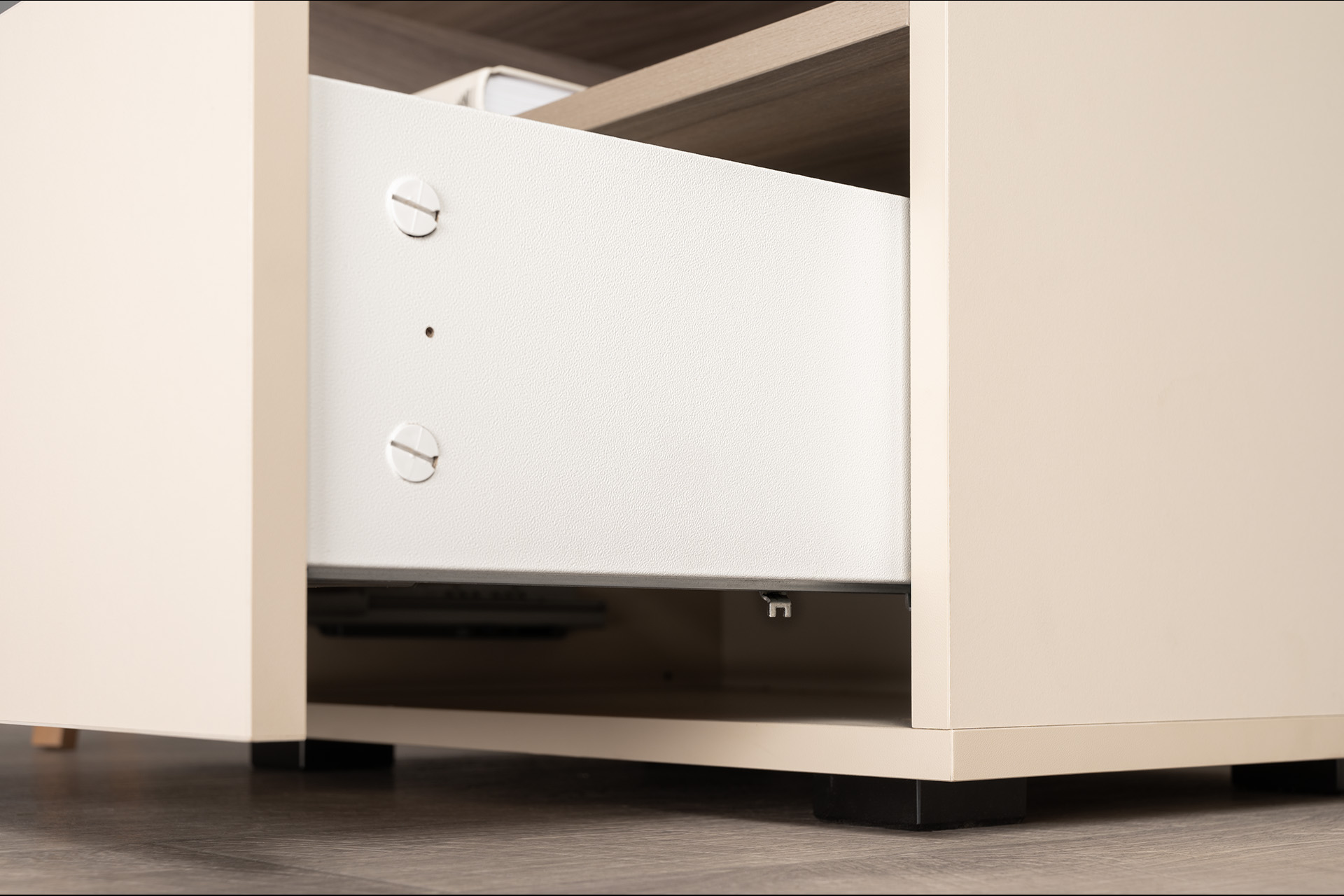 Фасады с механизмом push-to-open, направляющие скрытого монтажа, петли с доводчиками, утолщённая кромка – комфорт продуман до мелочей.